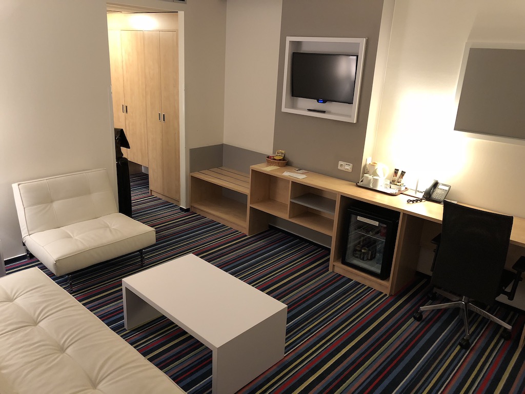 Die Marke Holiday Inn gehört der Hotelkette IHG an, bei welcher ich den höchsten Status – Spire – innehalte. Deshalb buche ich IHG Hotels immer ausschließlich direkt auf IHG um die Vorteile meines Status zu nutzen. Bei Holiday Inn Hotels bedeutet dies ein Upgrade nach Verfügbarkeit, ein Late Check-Out nach Verfügbarkeit, sowie 500 Willkommenspunkte oder ein Getränk mit einem Snack an der Bar.