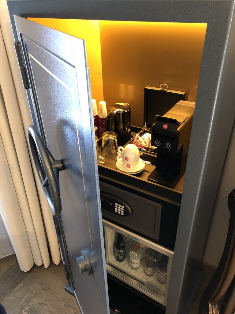 Weitere positive Annehmlichkeiten im Zimmer sind ausreichend Steckdosen und USB-Ports zum Laden diverser Endgeräte, elektrische Vorhänge, welche das Zimmer komplett abdunkelten, sowie ein Tresor, eine illy-Kaffeemaschine und die bereits erwähnte inkludierte Minibar mit lokalen Getränken und Snacks (leckeres Hopped Blonde), sowie einem Kit für einen Cocktail. Die Klimaanlage war ebenfalls sehr leicht zu bedienen und ausgesprochen leise. Hauschuhe und Bademäntel gehören natürlich ebenfalls zur Ausstattung des Zimmers.