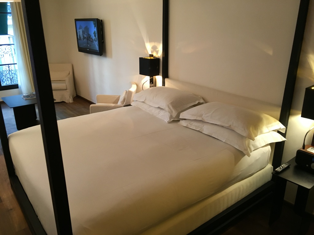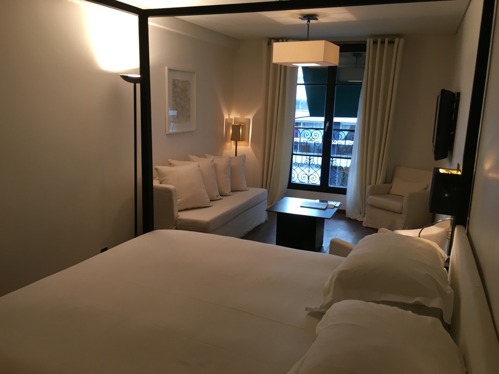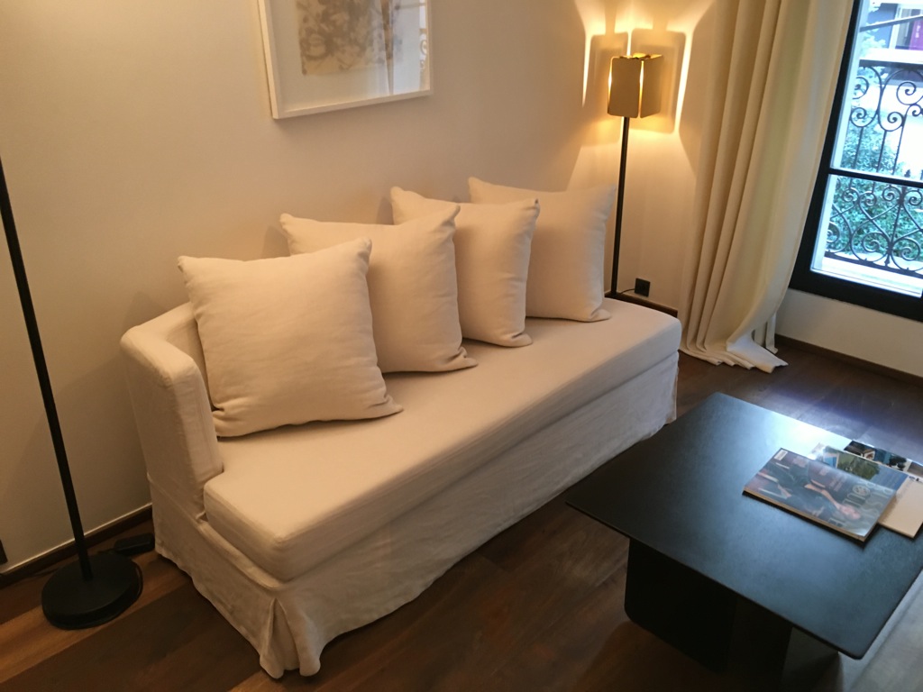 Die Junior Suite war sehr schlicht eingerichtet, wobei mir dies durchaus gefällt. Im ersten Moment empfand ich das Zimmer als Junior Suite etwas klein, was allerdings auch daran liegt, dass ich direkt vor unserem Aufenthalt in Paris aus den USA gekommen bin, wo nun einmal alles ein wenig größer ist. Wenn man die Zimmergröße allerdings mit einem durchschnittlichen Zimmer in Paris vergleicht, kann man es durchaus als großzügig bezeichnen.