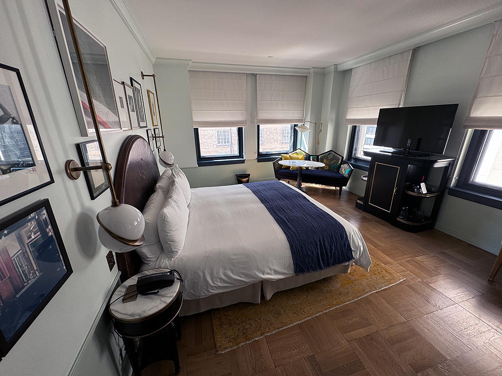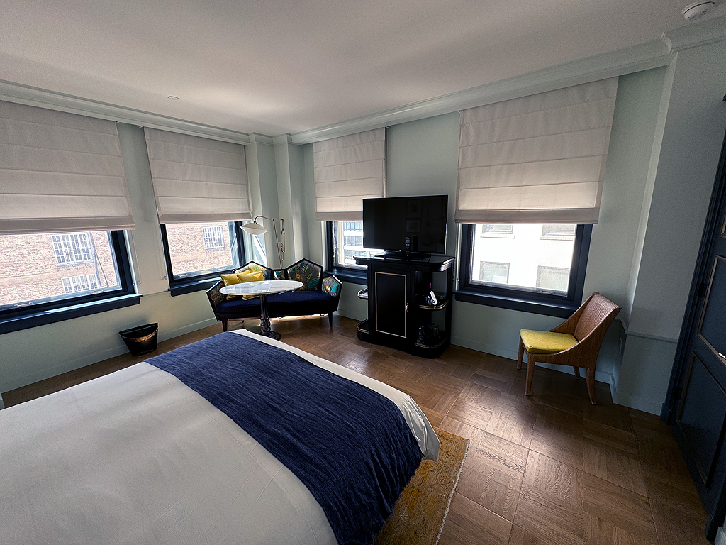 Ich erhielt ein Upgrade in eine Studio Suite, die bis auf den Namen wenig mit einer klassischen Suite gemein hat. Eher würde sie einem Eckzimmer entsprechen, da sie aufgrund ihrer Lage in einer Gebäudeecke an zwei Seiten des Raumes Fenster hat. Das Zimmer war dennoch geräumig und größer, als ich ihn erwartet hatte.