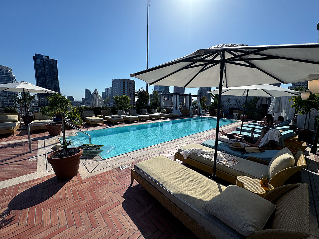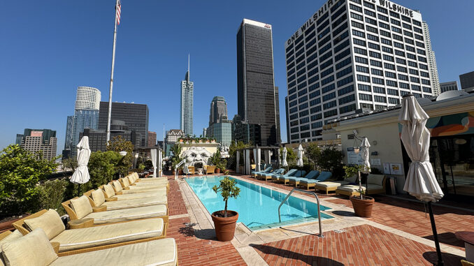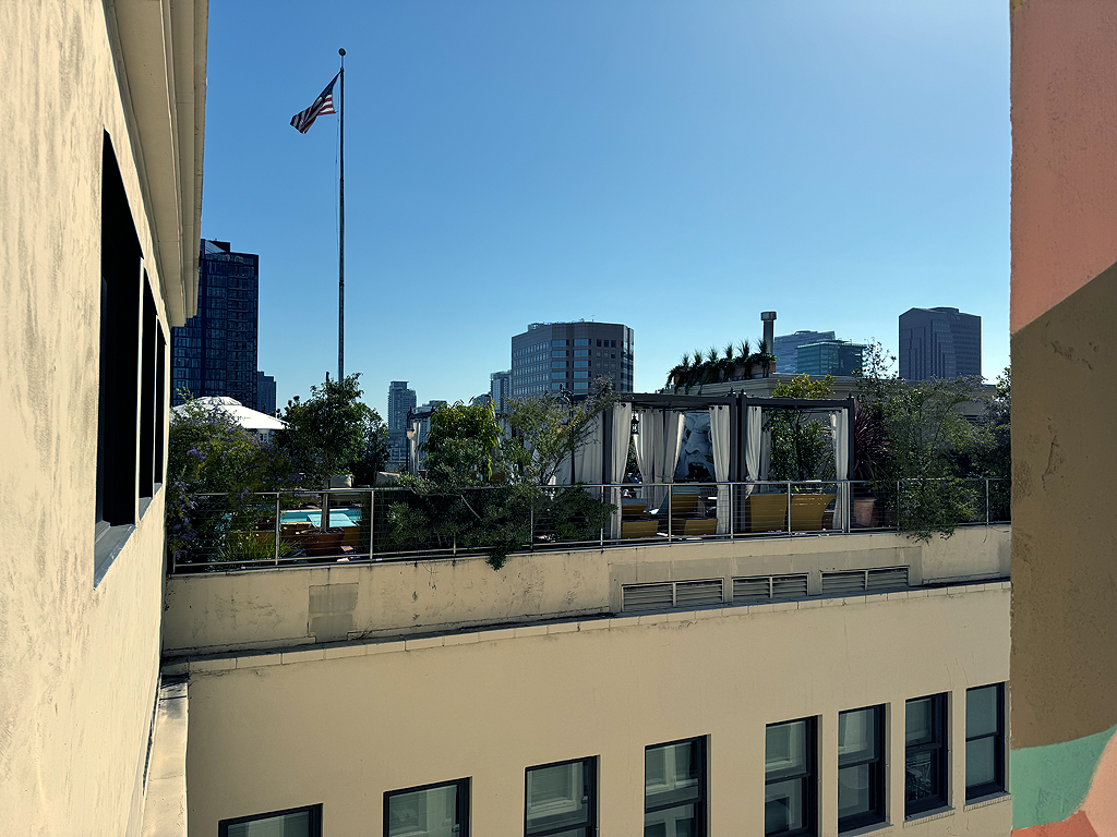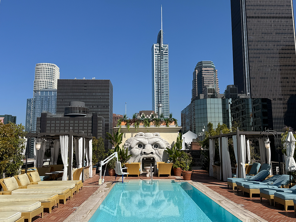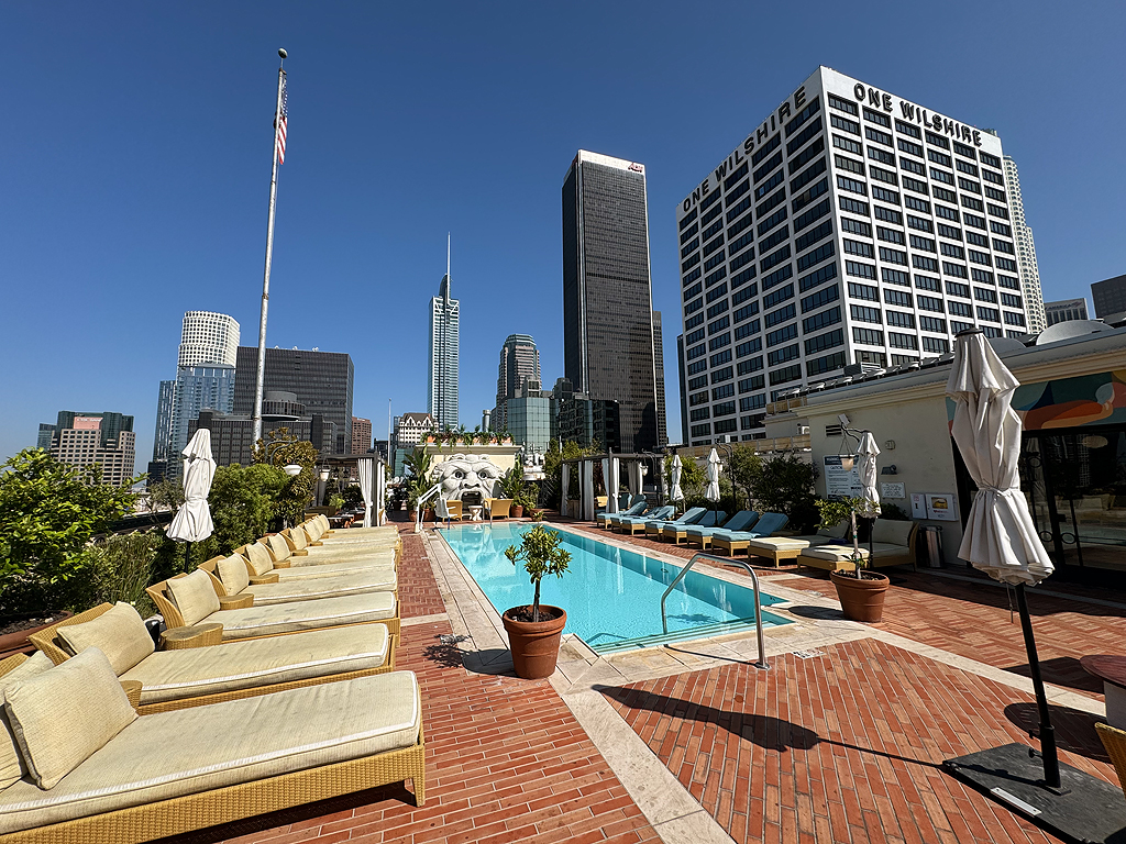 Der Swimming Pool befindet sich zusammen mit einer Cocktailbar auf dem Dach des Hotels. Von dort hat man eine herrliche Aussicht über LA, auch wenn das Hotel nicht das höchste Gebäude der Stadt oder von Downtown LA ist.