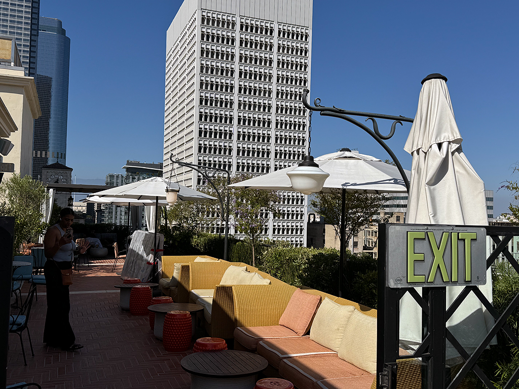 Allerdings gibt es einen Wermutstropfen: Die Rooftop Pool und die Bar sind ein sehr beliebter Veranstaltungsort. Und in LA gibt es immer irgendwen, der irgendwas zu feiern hat. Dementsprechend werden Pool & Bar immer wieder für Partys gebucht, während derer Hotelgäste leider keinen Zugang zum Dach haben. Da es zumeist keine Kindergeburtstage sind, die dort oben gefeiert werden, ist um 18 Uhr auch noch lange nicht Schluss mit der Feierei. Die Musik (bzw. der Bass) durchdringt die oberen Etagen des Hotels dann bis weit nach Mitternacht.