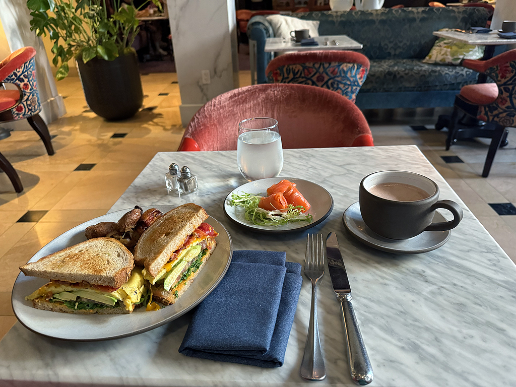 Du bekommst 30 USD pro Person als Frühstücksguthaben, das Du z.B. im Restaurant ausgeben kannst. Ich habe davon das abgebildete Sandwich, den Saft und den Kakao bestellt, ohne das Guthaben zu überschreiten.