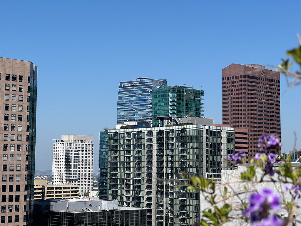Das Hotel liegt in Downtown Los Angeles (DTLA) an der Kreuzung der 6th Street/Olive Street. Das ist ein eher ruhiger Abschnitt von Downtown. Es gibt in direkter Nachbarschaft einige Restaurants und Hotels, aber auch geschlossene und wenig ansprechend aussehende Ladenlokale. Allerdings habe ich nicht viel Zeit in der direkten Umgebung des Hotels verbracht, sondern meistens meinen Wagen vom Valet-Service parken bzw. bringen lassen.