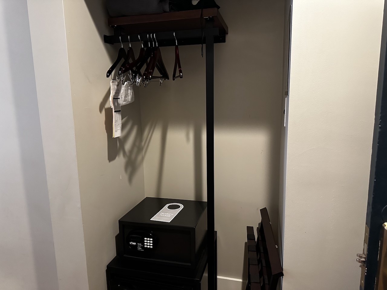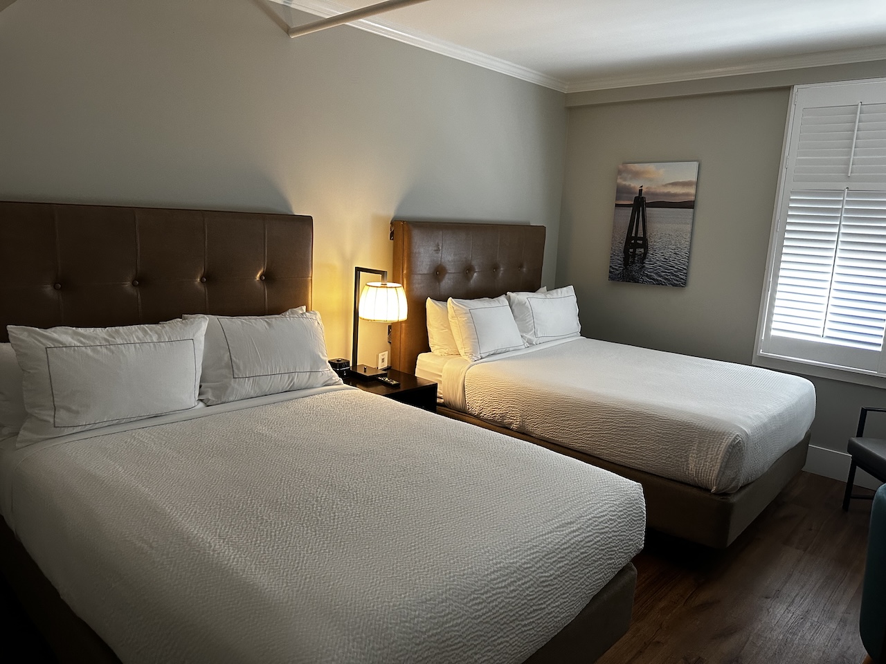 Wir waren gegen Mittag im Hotel, zu dem Zeitpunkt war noch kein Zimmer frei. Ein Mitarbeiter checkte uns aber schon ein. Er übergab uns eine Plakette für das Parkhaus, damit konnten wir dann auch über Nacht dort kostenlos parken. Zusätzlich erhielten wir pro Tag und Person einen 15$ Gutschein für den Coffeeshop und einen Käseladen, der an das Hotel angrenzte.