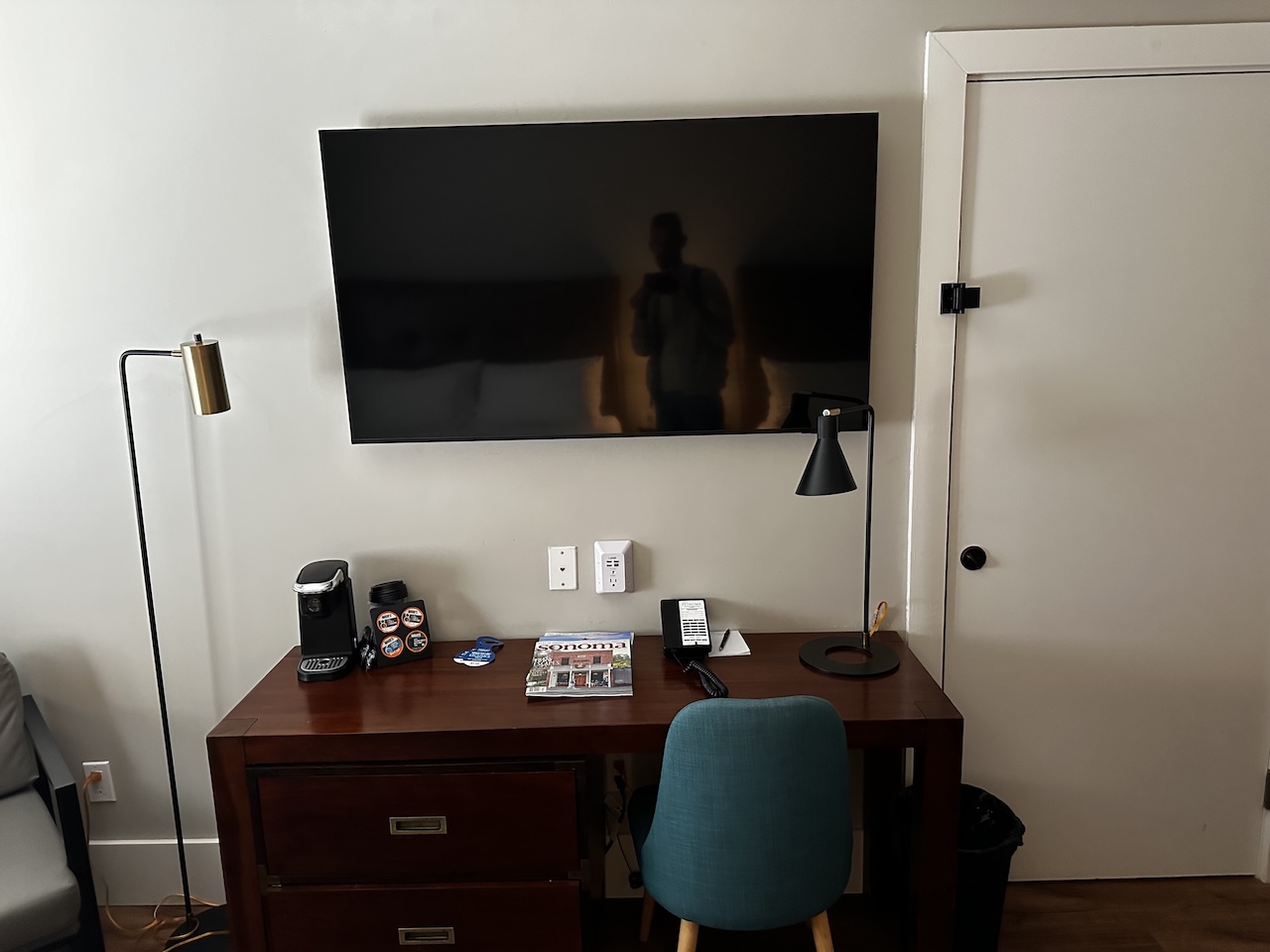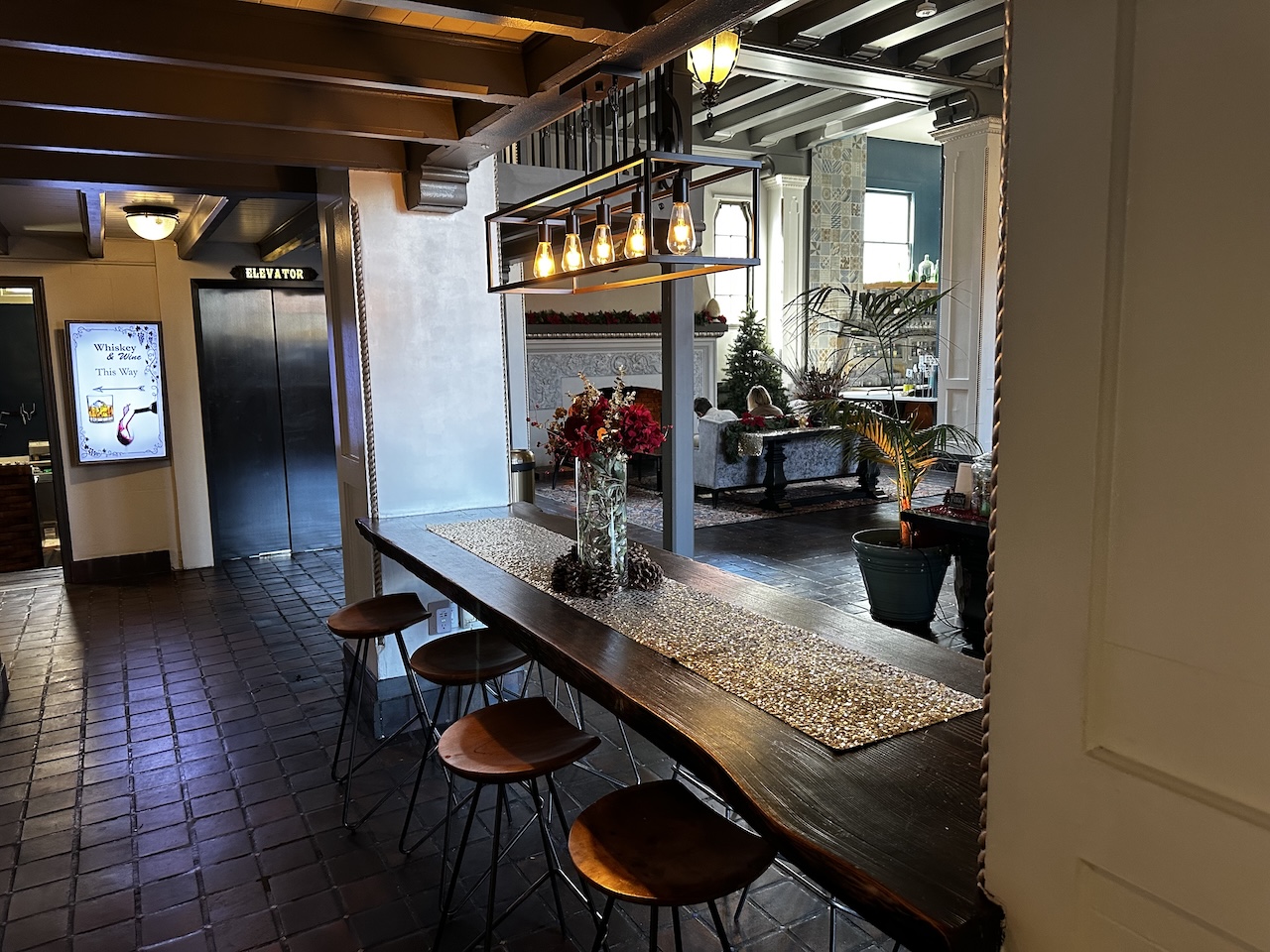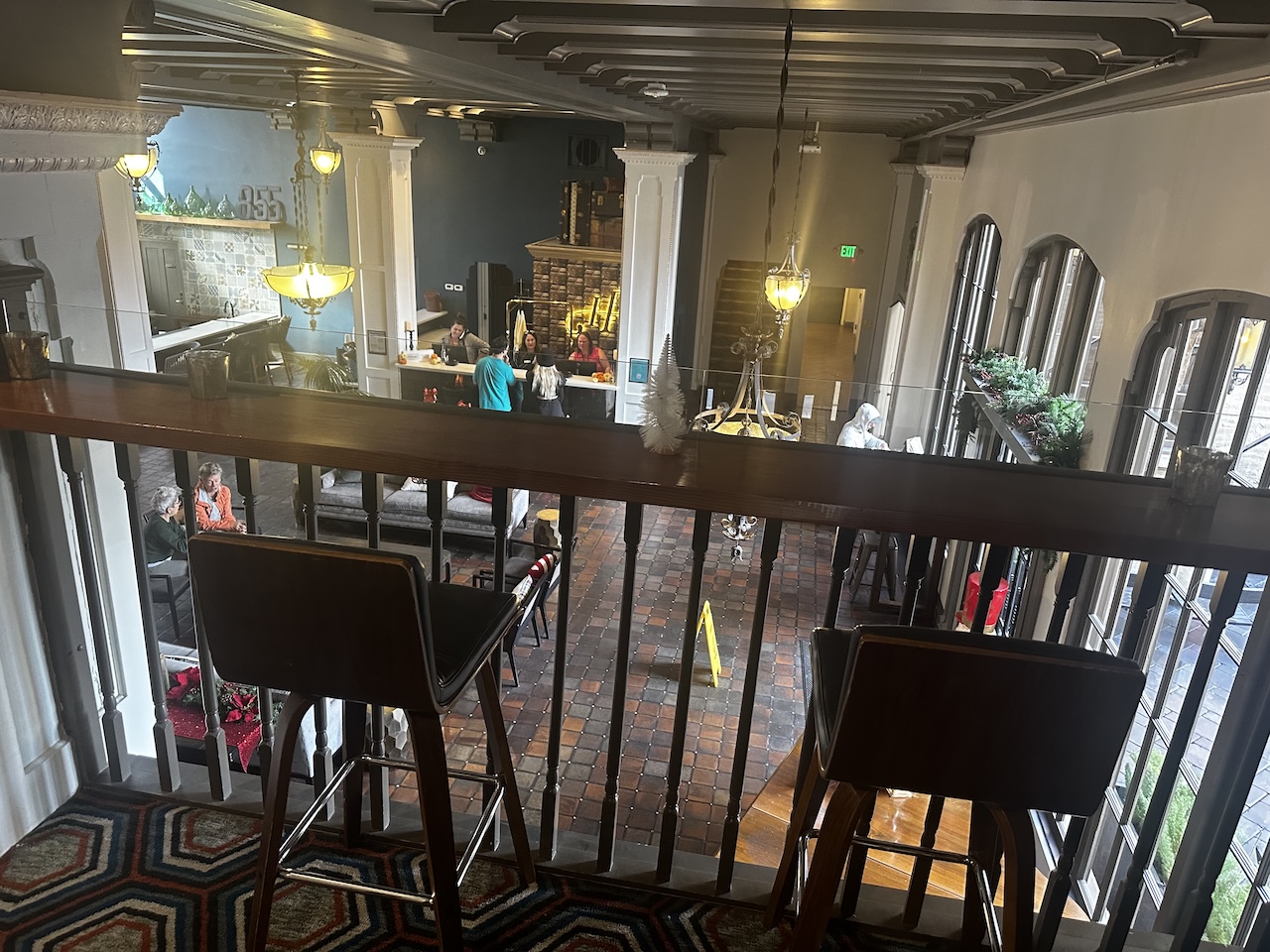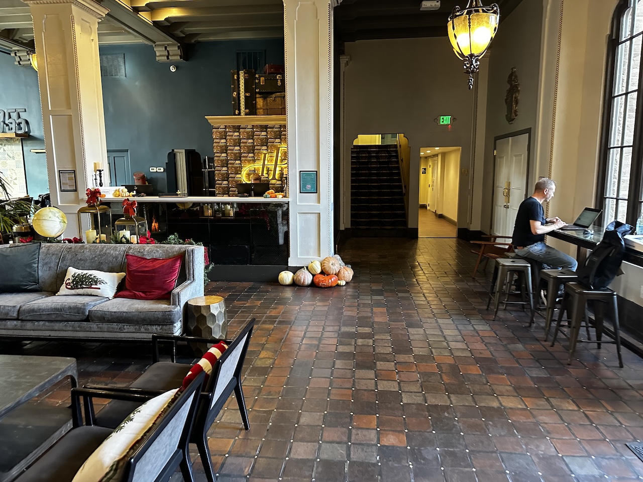 Das Hotel ist etwas kleiner und versprüht einen gewissen Charme. In der Lobby sind zahlreiche Sitzgelegenheiten und ein großer Kamin. Wir haben es uns gemütlich gemacht, einen kostenfreien Kaffee geholt und etwas an der weiteren Reise gearbeitet.