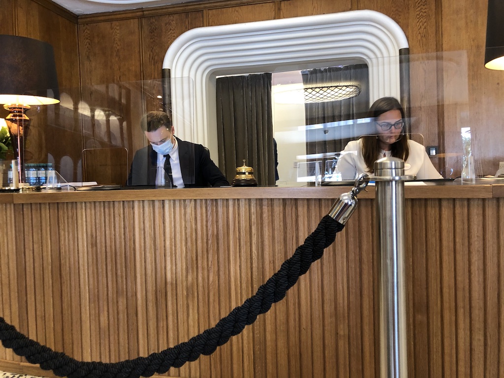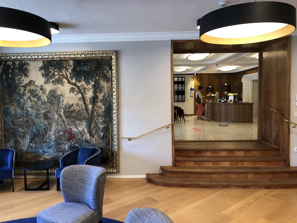 Lobby und Rezeption sind in klassischem Stil gehalten, eine Mitarbeiterin kümmerte sich an einem Schreibtisch um den Check-In. Das Zimmer war bei der Ankunft um 13 Uhr bezugsfertig, Upgrade und das Guthaben wurden ohne Nachfrage von der Dame bestätigt. Die Einzelheiten waren auch in einem Willkommensbrief von American Express beschrieben, anschließend wurden noch die Einrichtungen und Öffnungszeiten einzelner Einrichtungen kurz erläutert.