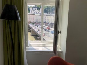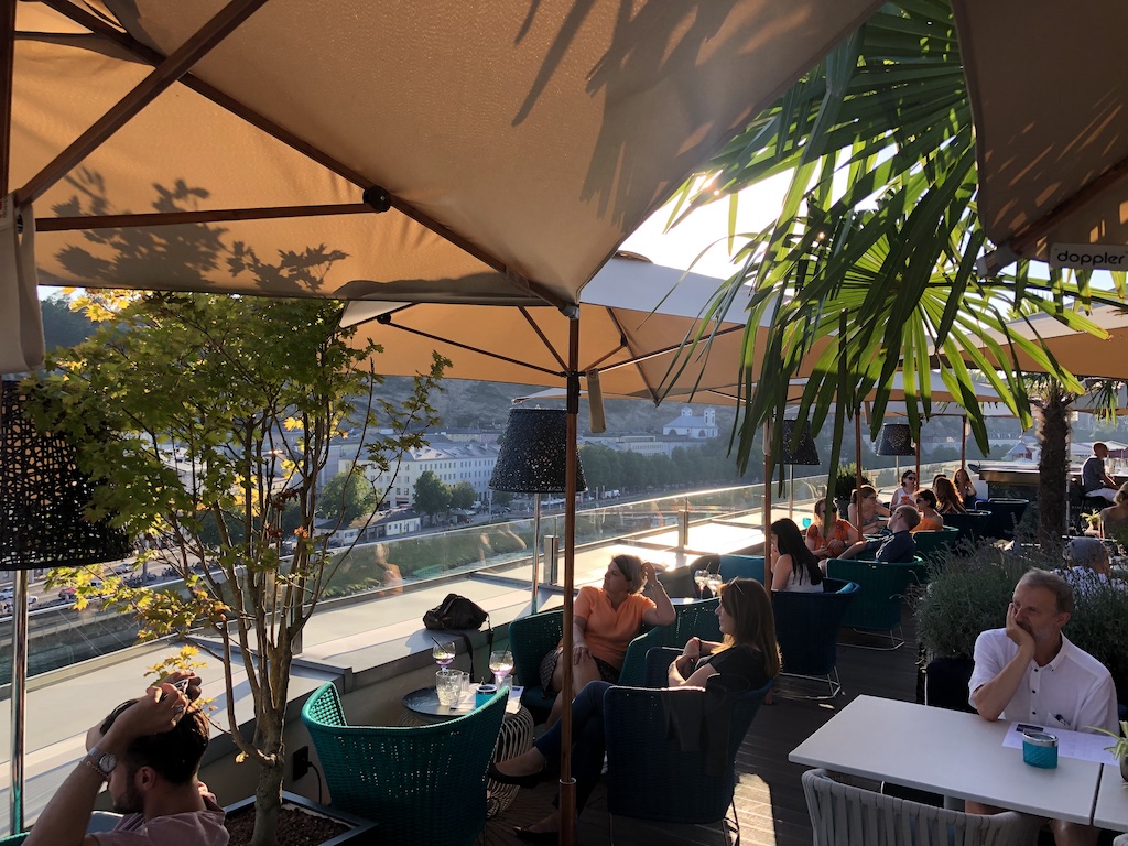 Die Wahl fiel auf das in Salzburg bekannte Hotel Stein. Die Lage ist sehr zentral, die Dachterasse mit dem Panoramablick zieht auch einheimische Besucher an. Ein Blick in das Reiseportal von American Express überzeugte mich, für Inhaber der Platinum-Karte gibt es dort einen interessanten Benefit.
