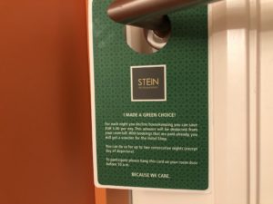 Wer nichts dagegen hat, seine Handtücher wiederzuverwenden und die Betten selbst zu machen, kann auf die tägliche Reinigung des Zimmers verzichten. Dafür werden 5€ Guthaben auf das Zimmerkonto gebucht. Die Ration an Espresso und Tee war ausreichend für mehrere Tage, die kostenlose Minibar beinhaltete fünf Getränke.