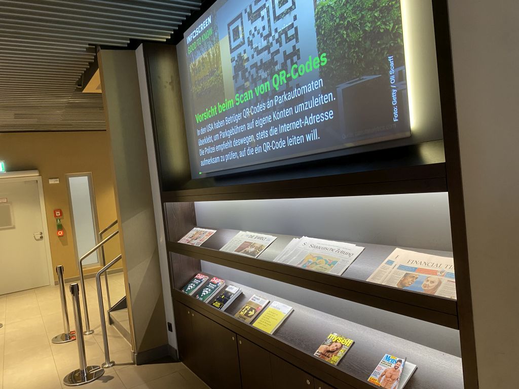Gewohnt freundlich wurden wir an der Rezeption empfangen. Nach kurzem Scan meiner digitalen Priority Pass Karte wurden wir auch schon in die Lounge hinein gelassen. Ein kurzer Blick in die gut gefüllte Lounge und wird wendeten uns nach links, um über die Treppe auf die obere Etage der Lounge zu kommen.