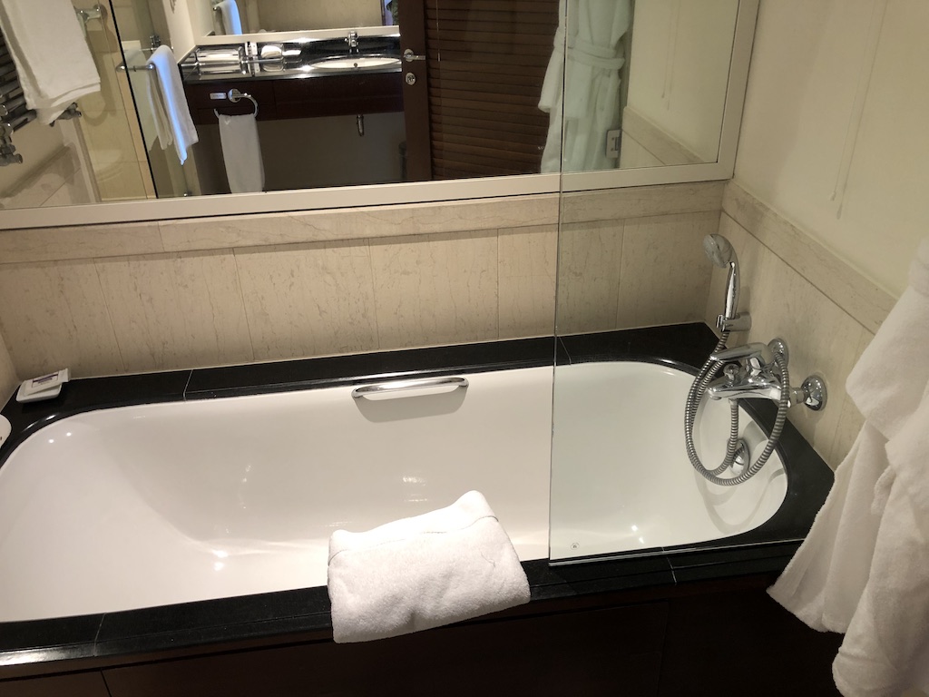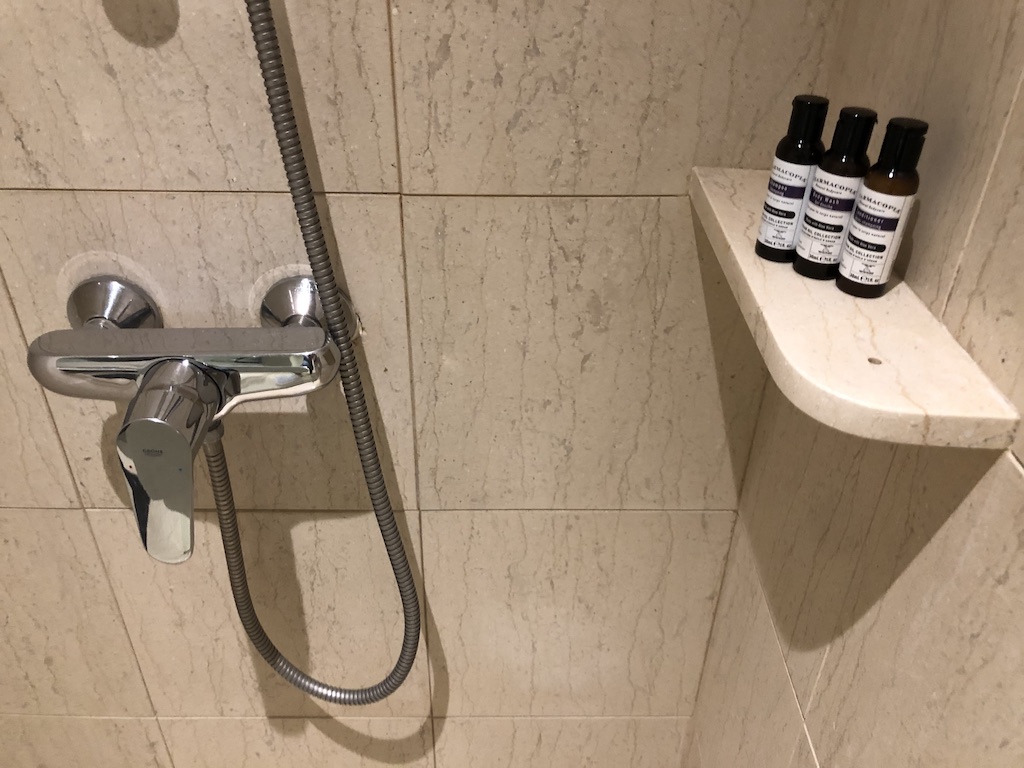 Im Bad gab es eine Badewanne sowie eine große Dusche mit Pflegeprodukten und flauschigen Handtüchern.