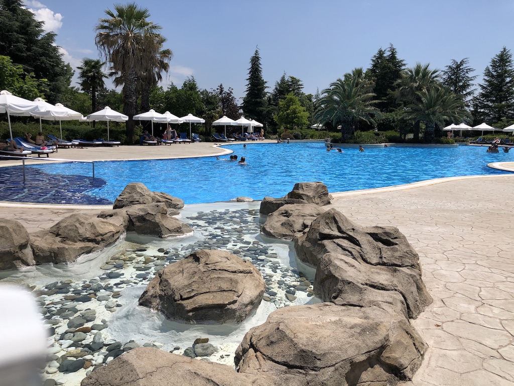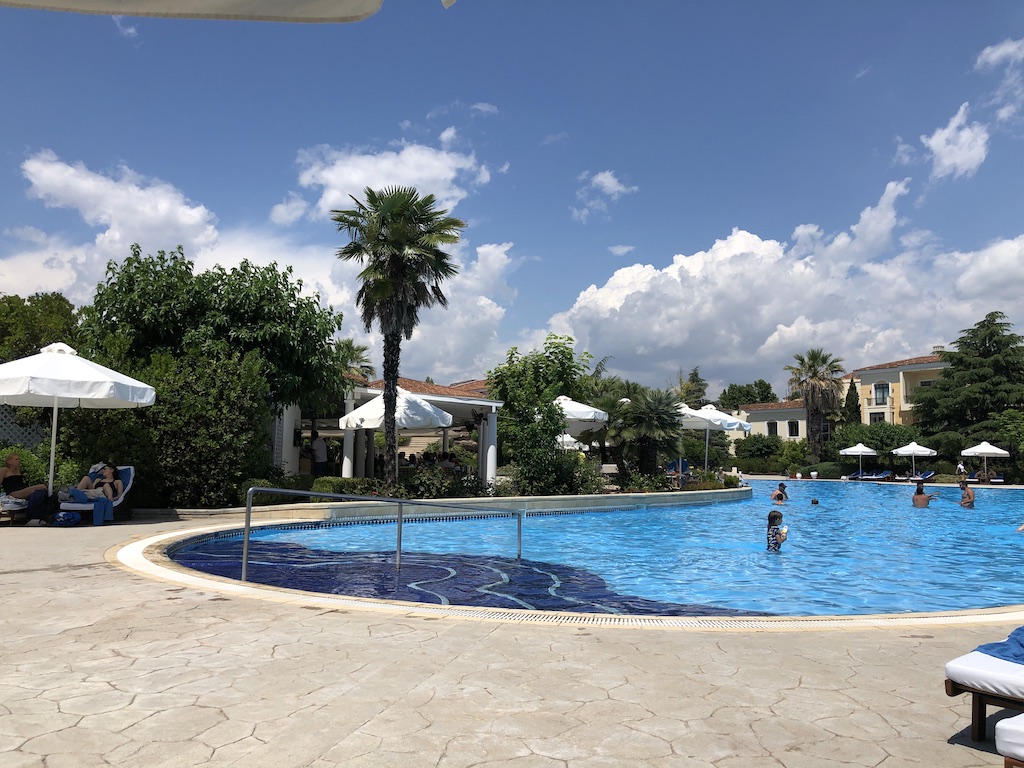 Der Aufenthalt war an einem Wochenende über das orthodoxe Pfingstfest, viele Familien waren im Hotel untergebracht. Auf der weitläufigen Anlage kommt man sich aber nicht wirklich nahe.