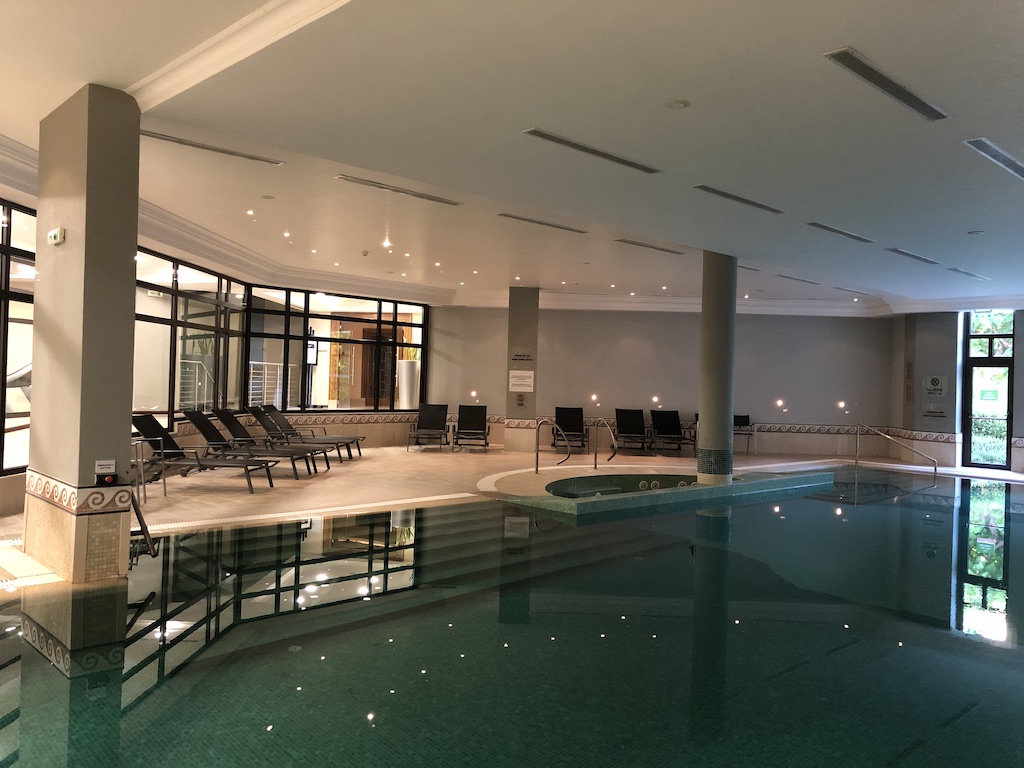 Die Rezeption des Wellnessbereichs war nicht besetzt, der Bereich um den Indoorpool und die Saunen ist sehr großzügig.