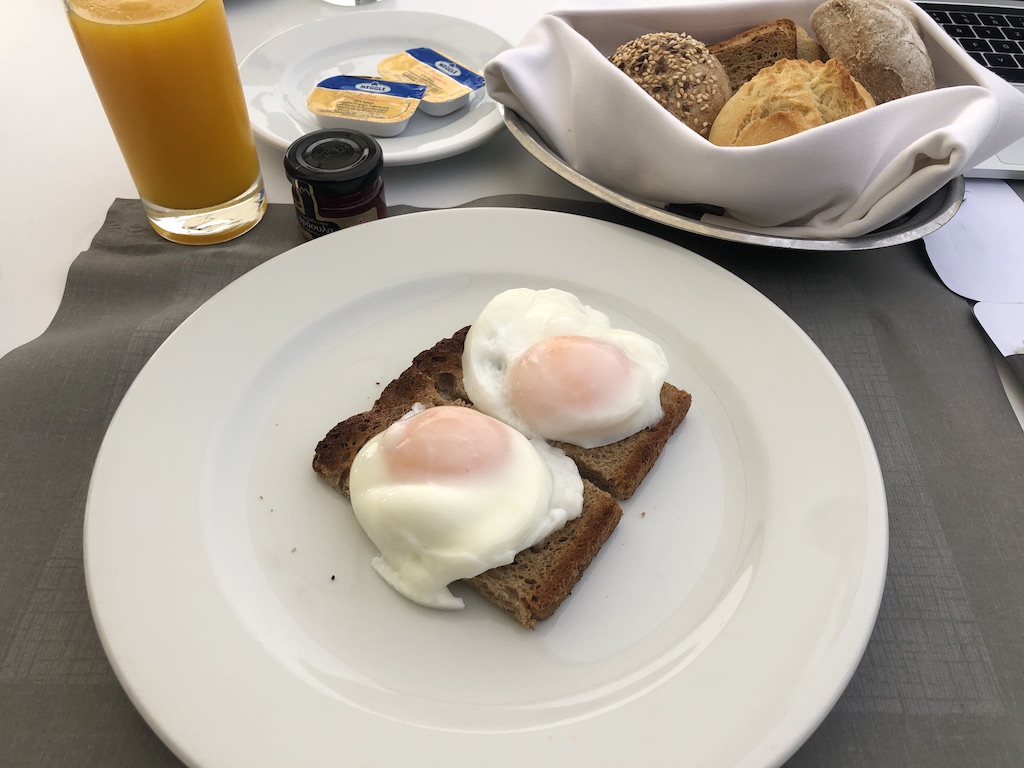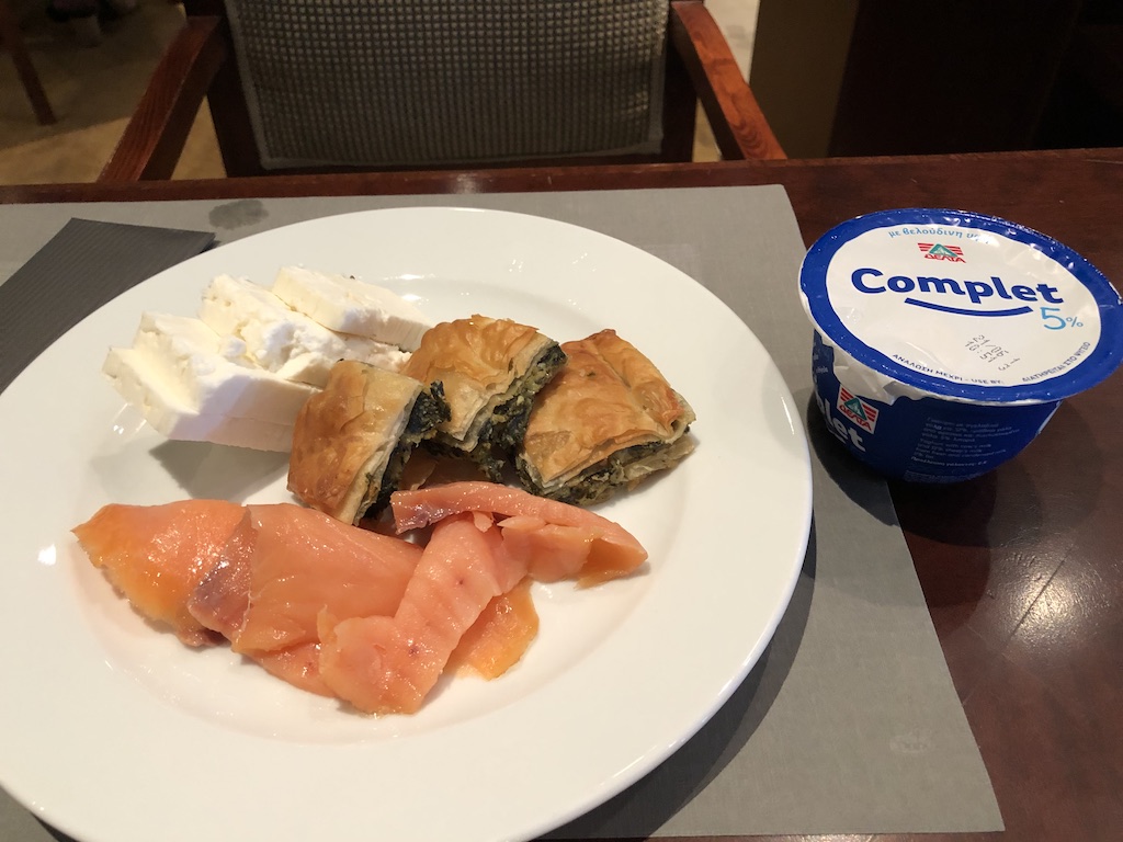 Kaffee, Getränke und Eierspeisen kann man direkt am Tisch bestellen, was angenehm ist, aber manchmal die Geduld der Gäste strapaziert. Am Buffet gab es die üblichen Speisen und griechische Optionen wie Feta, Spinatkuchen oder Sesamkringel.