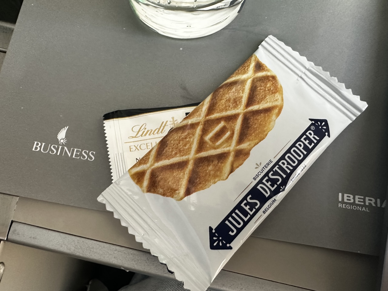 Vor der Landung hatte ich noch eine Tasse Kaffee, dazu wurden Schokolade und Waffeln angeboten.