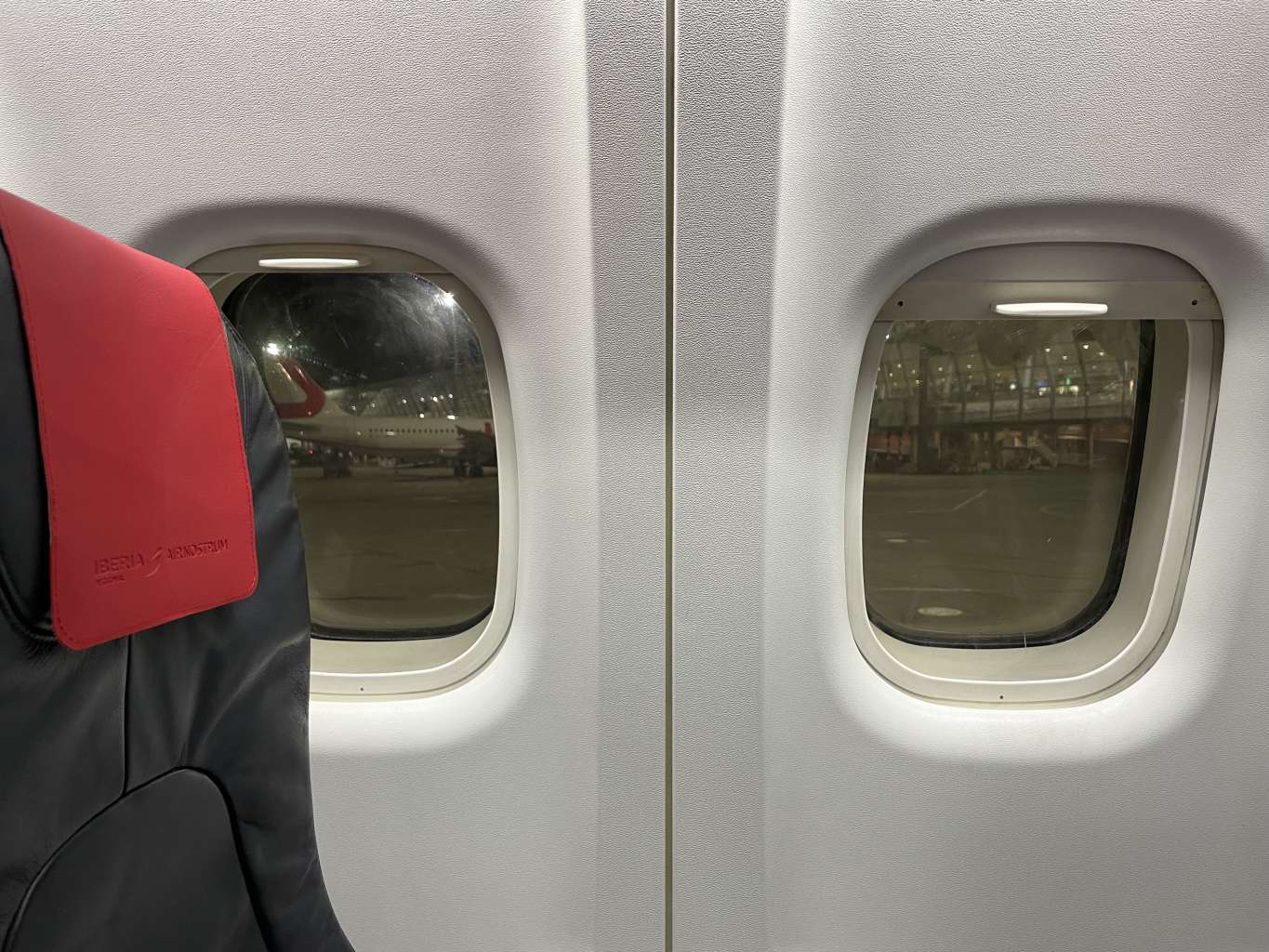 Mal wieder war ich zu vorsichtig und zu vorzeitig aus der Lounge aufgebrochen. Aber irgendwie gönnte ich dem Team auch ihren Feierabend. Ein so knappes Boarding, wie bei diesem Iberia-Flug hatte ich dennoch nicht erwartet. Aber warum auch früh boarden, wenn das Flugzeug zu Fuß erreichbar ist und nur 15 – 20 Fluggäste einsteigen müssen.