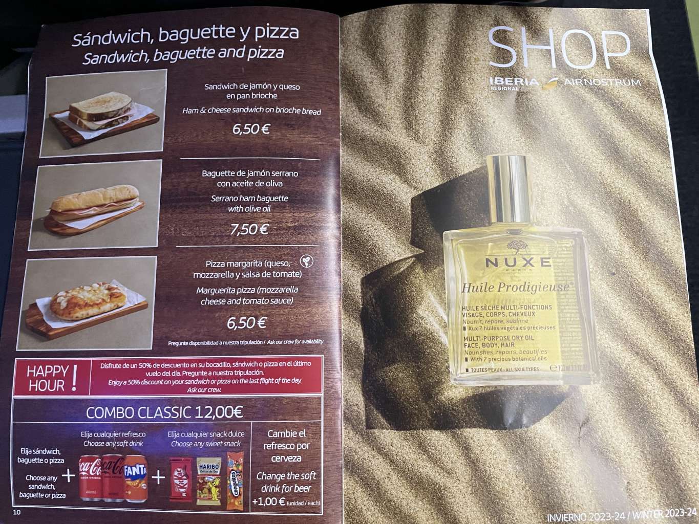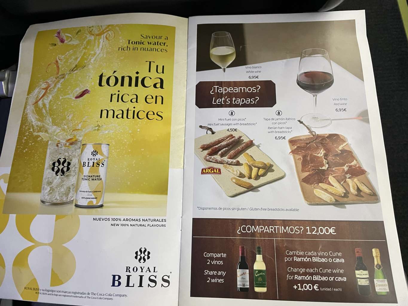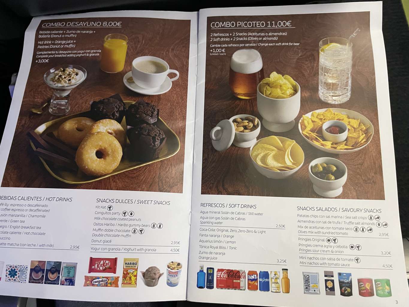 Bei Iberia gibt es auf derartig kurzen Strecken Speisen und Getränke lediglich zum Verkauf. In der Sitztasche des Vordersitzes fand ich eine Speisekarte mit dem Angebot des heutigen Menüs.