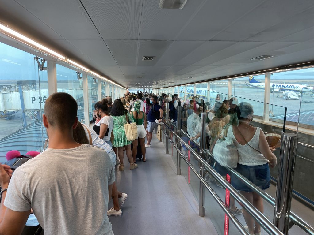 Und nachdem meine Bordkarte gescannt worden war, merkte ich, dass all die Mühen vergebens war. In Vorbereitung eines Corona-sicheren Flugs mit Masken drängelten sich dutzende Fluggäste in der Fluggastbrücke dicht an dicht. Ja genau Ihr Schwurbler, auch Spanien hatte bis vor Kurzem noch eine Maskenpflicht auf Flügen.