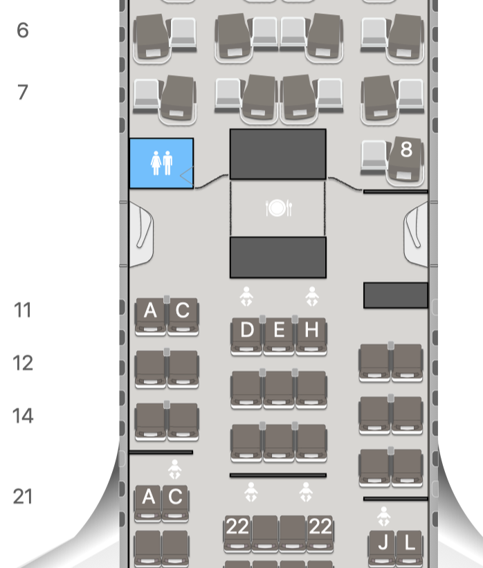 Ein Blick auf die Seatmap bestätigte meine Vermutung: Wir hatten Plätze in der Premium Economy Class erhalten. Diese waren zwar auch nicht zusammenhängend, wir freuten uns trotzdem und fragten uns warum der Gate Agent dies nicht mitteilen wollte…
