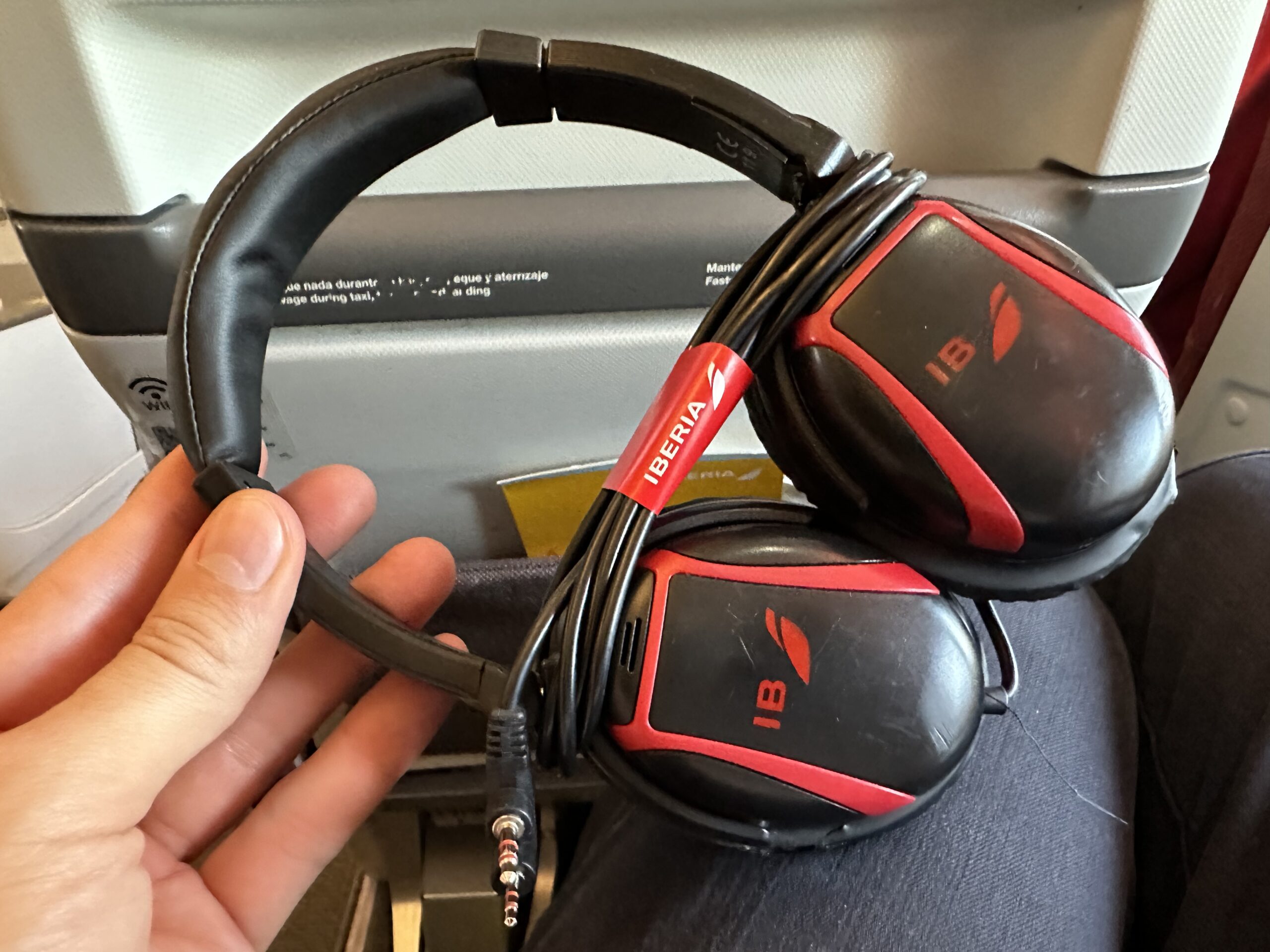 Noch am Boden haben die Flugbegleiter Kopfhörer verteilt, Iberia bietet hier etwas hochwertigere Exemplare und gibt diese auch auf den kurzen Flügen innerhalb von Europa aus.