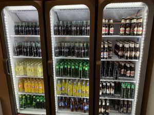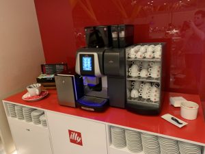 Auf dem Buffet stand auch eine Kaffeemaschine mit Kaffee von illy und in Kühlschränken gab es eine Reihe von alkoholfreien Getränken. An der Bar wurden auch alkoholische Getränke zur Selbstbedienung angeboten. Dabei war hier die Auswahl für eine Business Lounge nicht schlecht.