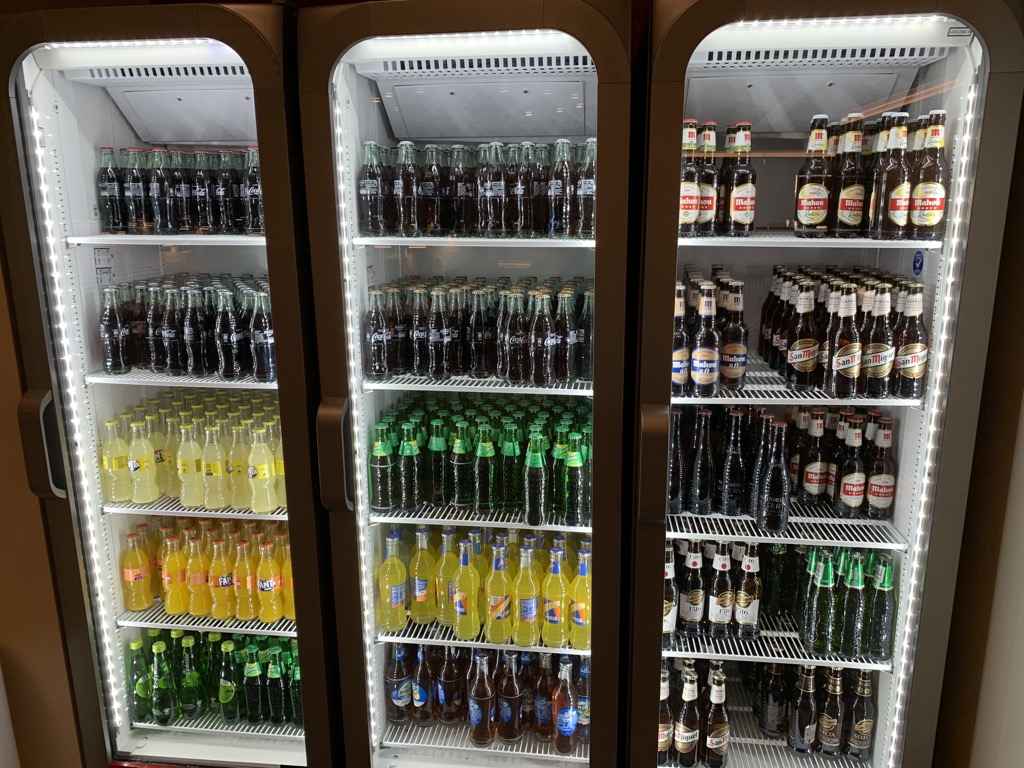 Auf dem Weg zum Sitzplatz habe ich mir im Vorbeigehen ein köstliches alkoholfreies Bier geschnappt. Zur Auswahl standen außerdem diverse Softdrinks, Wasser und einige andere Biersorten. An mehreren Vollautomaten gibt es Heißgetränke zur Selbstbedienung.