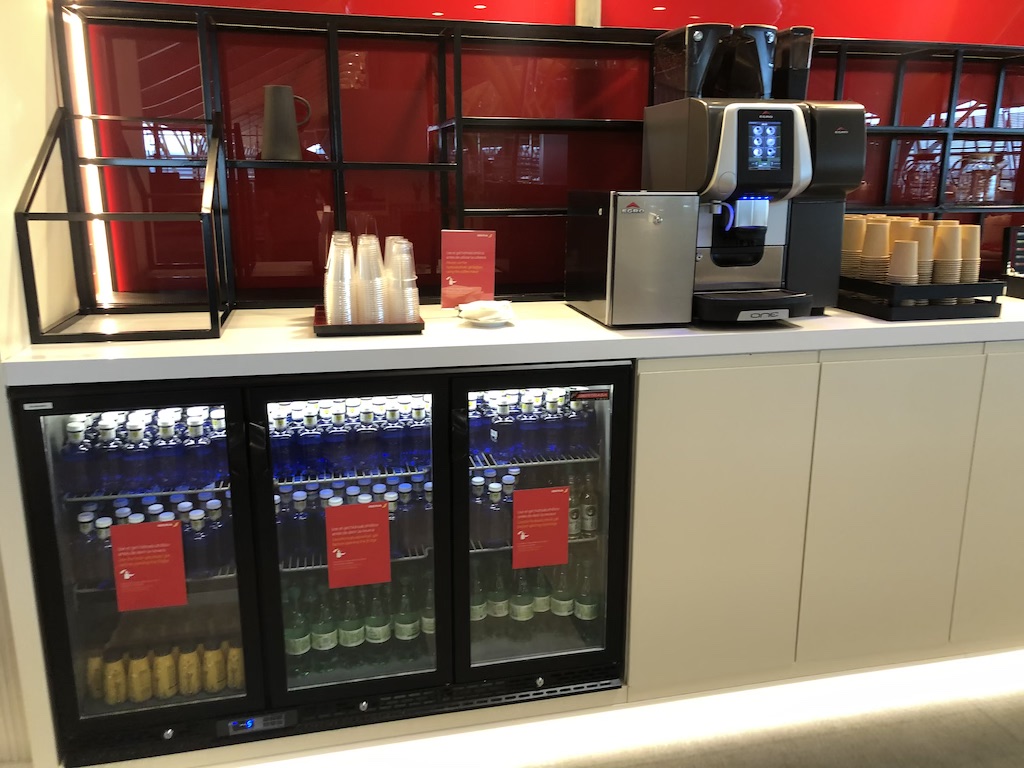 Offene Flaschen und einige lose Gegenstände sind verschwunden, Getränkekühlschränke und die Kaffeemaschinen stehen weiterhin zur Selbstbedienung.