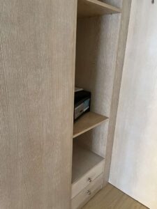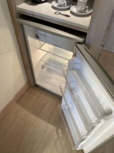 Und im Grunde gab es im Family Room mit Seaview auch nicht wirklich etwas zu meckern. Die Möbel hatten ein helles Holzdesign. Das Zimmer muss erst vor Kurzem renoviert worden sein. Die Aufteilung des Zimmers wirkte jedoch etwas gewöhnungsbedürftig. Denn nach Betreten des Zimmers durch die Eingangstür standen wir in einem schmalen Gang. Von dem ging nach links das Bad aus und am Ende des Ganges befand sich der Wohnbereich. Der hatte eine kleine Küchenzeile mit Mikrowelle und Kühlschrank, sowie jede Menge Stauraum.