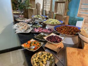 Das Mittagessen und Abendessen im Iberostar Pinos Park wird ebenfalls in Büffetform dargereicht. Das Angebot ist vielfältig und hat auch mir Spaß gemacht. Denn zum einen achte ich immer noch darauf, möglichst wenig Kohlenhydrate zu essen und zum anderen mag ich diese lauwarmen minderwertigen Gerichte von spanischen Hotelbüfetts nicht. Das war hier wirklich ein Stück weit anders und das Angebot wechselte an unterschiedlichen Stationen regelmäßig.