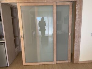 Doch wo war das Schlafzimmer? Das lag am anderen Ende des Ganges. Nach dem Betreten des Zimmers mussten wir also einen U-Turn oder wie unsere Außenministerin sagen würde, eine 360-Grad-Wendung machen, um in den separaten Schlafbereich zu gelangen. Dort stand dann auch das Bett für die Eltern.