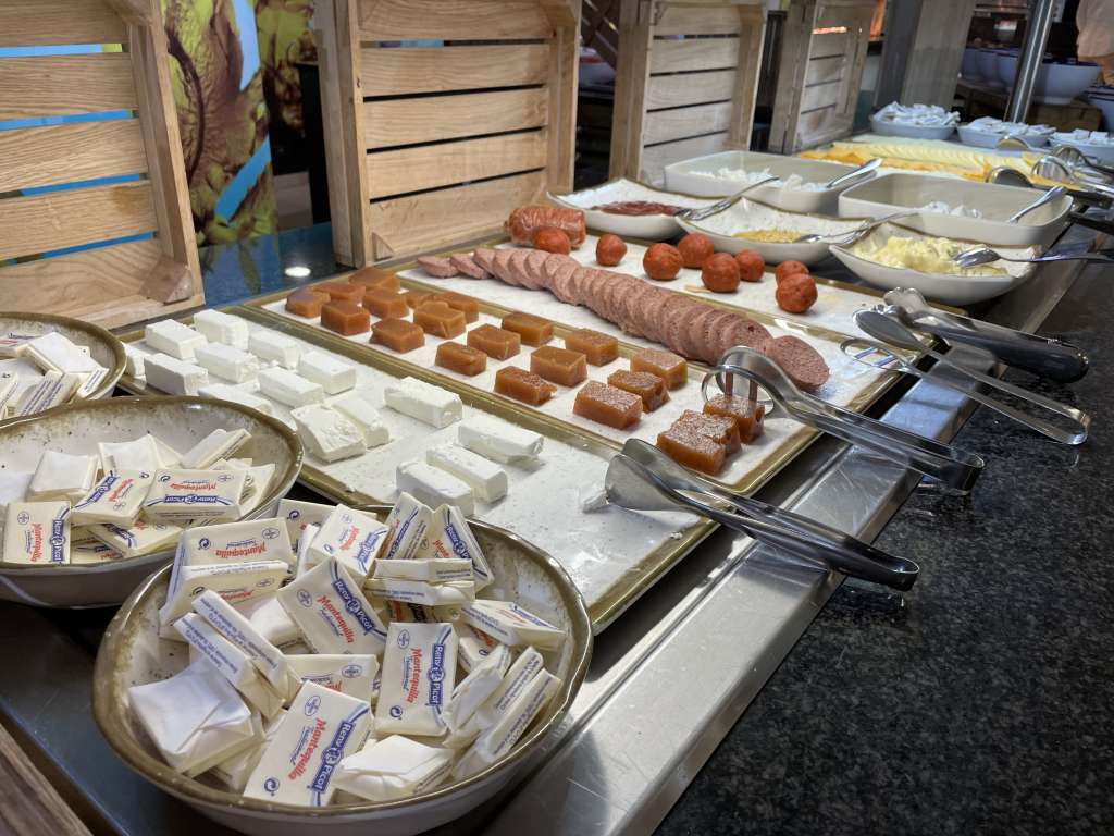 Verinnerlichen wir uns, dass wir in einem spanischen Pauschaurlauber-Resort sind, wird erst so richtig klar, was für ein inspirierendes Frühstück im Iberostar Pinos Park aufgefahren wird. Es gibt wirklich alles, was man zum Frühstück so gebrauchen kann, in ausreichender Menge und sehr ordentlicher Qualität.