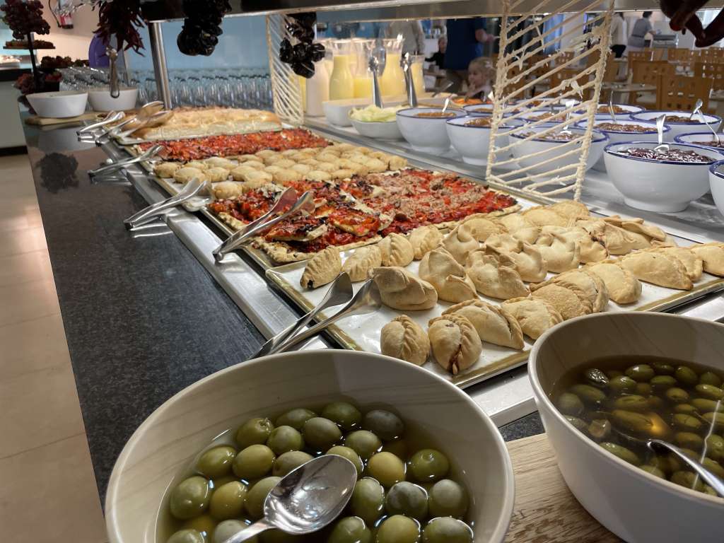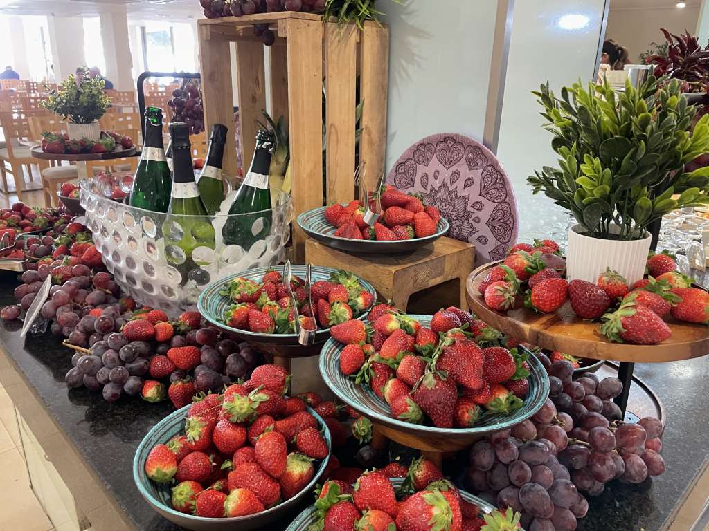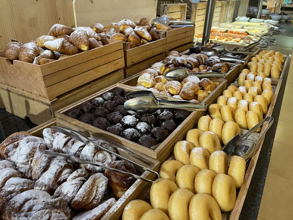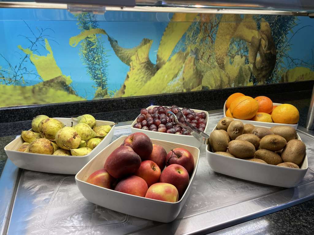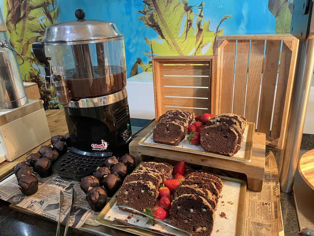 Und es gibt auch Alkohol. Cava steht beim Frühstück zur Selbstbedienung bereit. Und im April 2024 sogar auf einem verschwenderisch großen Berg von Erdbeeren.