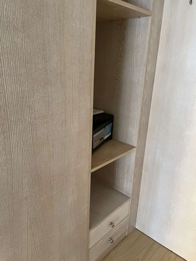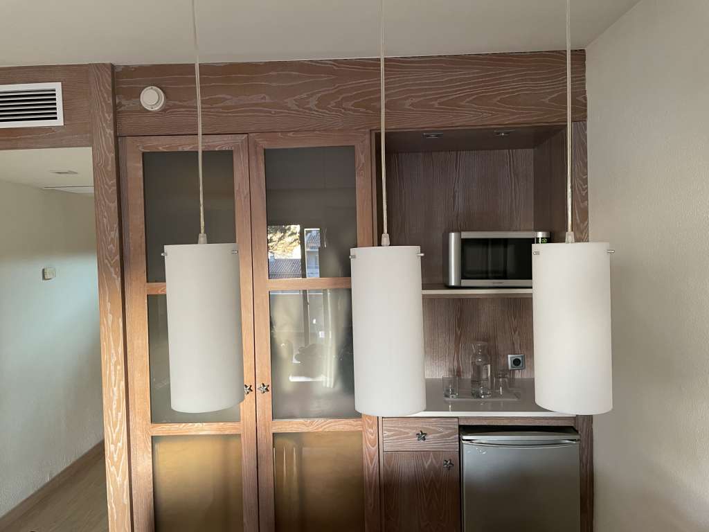 Und im Grunde gab es im Family Room mit Seaview auch nicht wirklich etwas zu meckern. Die Möbel hatten ein helles Holzdesign. Das Zimmer muss erst vor Kurzem renoviert worden sein. Die Aufteilung des Zimmers wirkte jedoch etwas gewöhnungsbedürftig. Denn nach Betreten des Zimmers durch die Eingangstür standen wir in einem schmalen Gang. Von dem ging nach links das Bad aus und am Ende des Ganges befand sich der Wohnbereich. Der hatte eine kleine Küchenzeile mit Mikrowelle und Kühlschrank, sowie jede Menge Stauraum.
