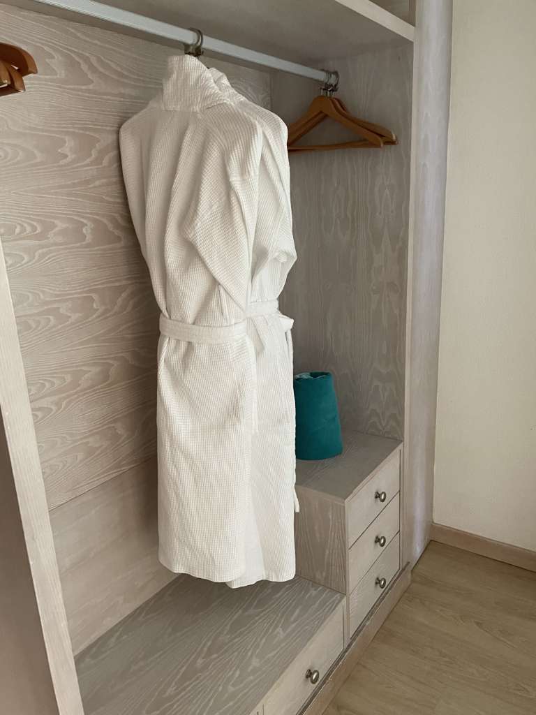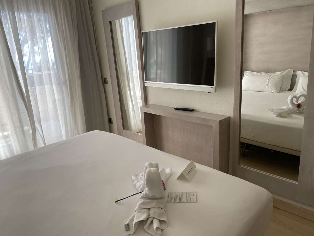 Unsere Junior Suite hatte die Nummer 3231 und lag auf der oberen Etage des zweistöckigen Gebäudes. Das hatte zwei Vorteile: Zum einen war der Meerblick oben natürlich besser und es konnten uns Passanten nicht ins Zimmer schauen, wie es im Erdgeschoss der Fall war.