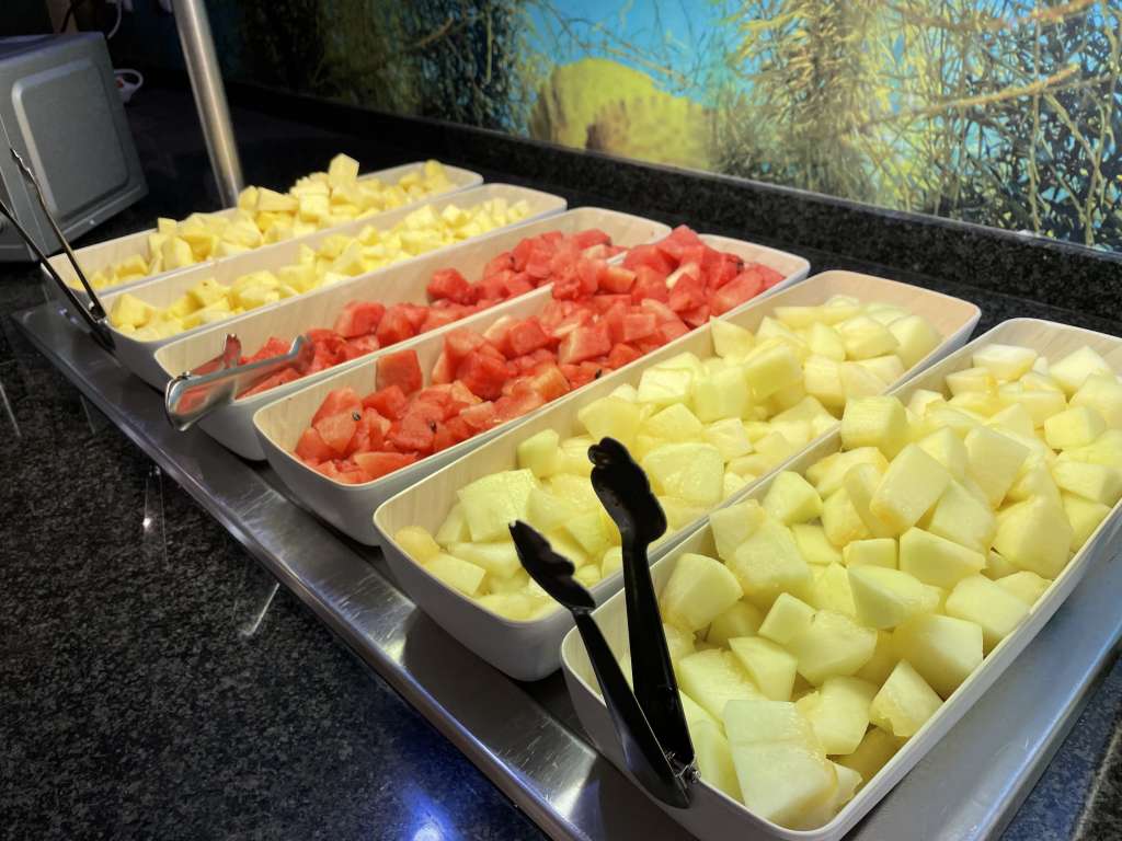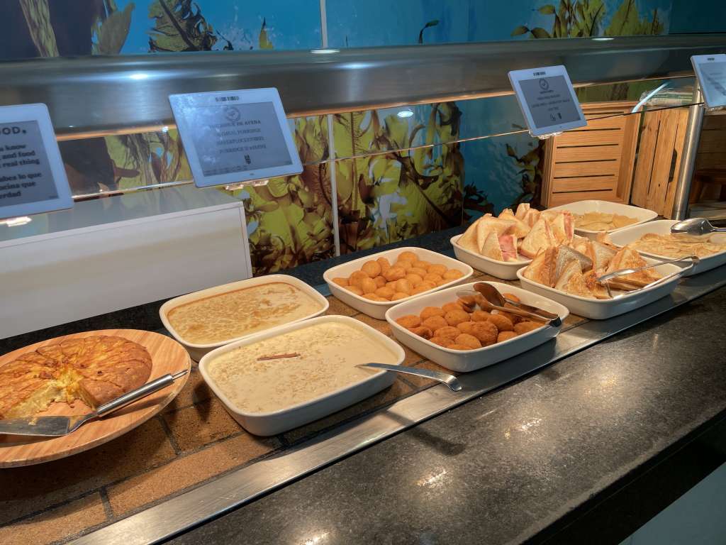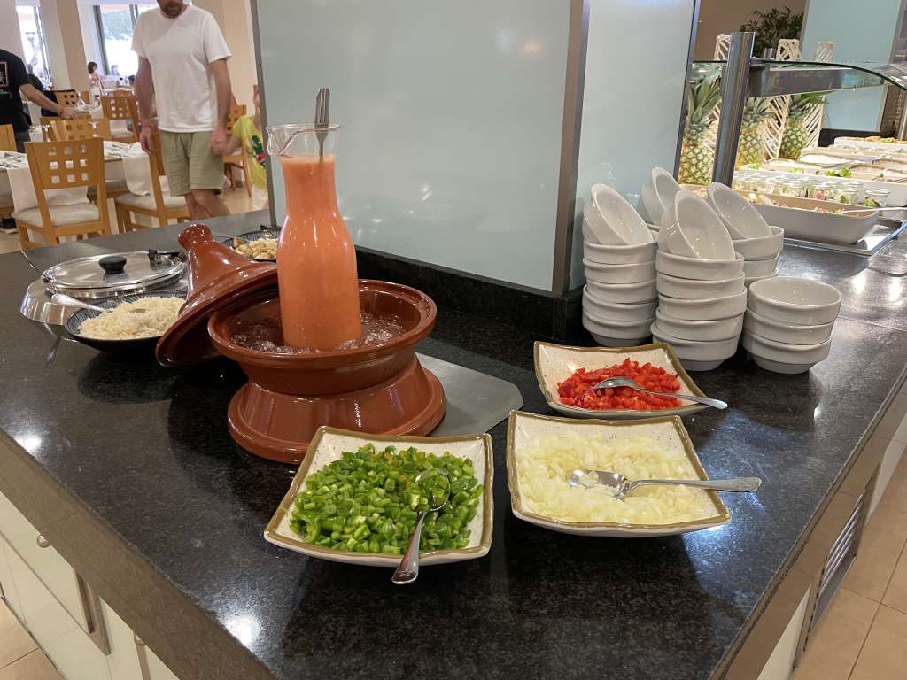 Das Mittagessen und Abendessen im Iberostar Pinos Park wird ebenfalls in Büffetform dargereicht. Das Angebot ist vielfältig und hat auch mir Spaß gemacht. Denn zum einen achte ich immer noch darauf, möglichst wenig Kohlenhydrate zu essen und zum anderen mag ich diese lauwarmen minderwertigen Gerichte von spanischen Hotelbüfetts nicht. Das war hier wirklich ein Stück weit anders und das Angebot wechselte an unterschiedlichen Stationen regelmäßig.