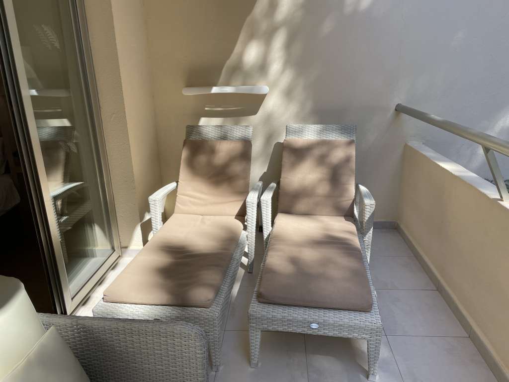 Die Junior Suite hätte in meinen Augen auch als echte Suite durchgehen können, denn sie bestand aus zwei vollwertigen Zimmern. Einem Wohnraum mit Schlafcouch, begehbarem Kleiderschrank und Einheit für Kühlschrank, Wasserkocher und Kaffeemaschine. Das zweite Zimmer war das Schlafzimmer mit großzügigem Doppelbett. Von beiden Räumen konnten wir die breite Terrasse betreten und uns auf einer der Liegen oder der Sitzgruppe niederlassen.