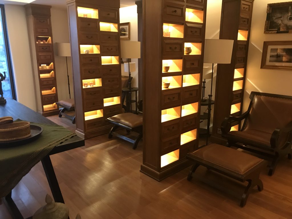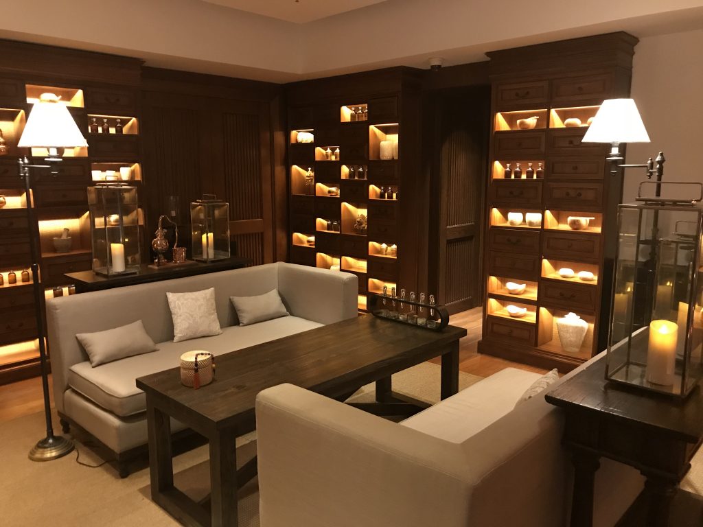 Was mich sehr positiv beeindruck hat, war die Welcome-Lounge. Hier wurden Gäste begrüßt, nach ihrem Gesundheitszustand gefagt und sie durften sich aus den verschiedenen Ölen und Peelings das passende für sich aussuchen.