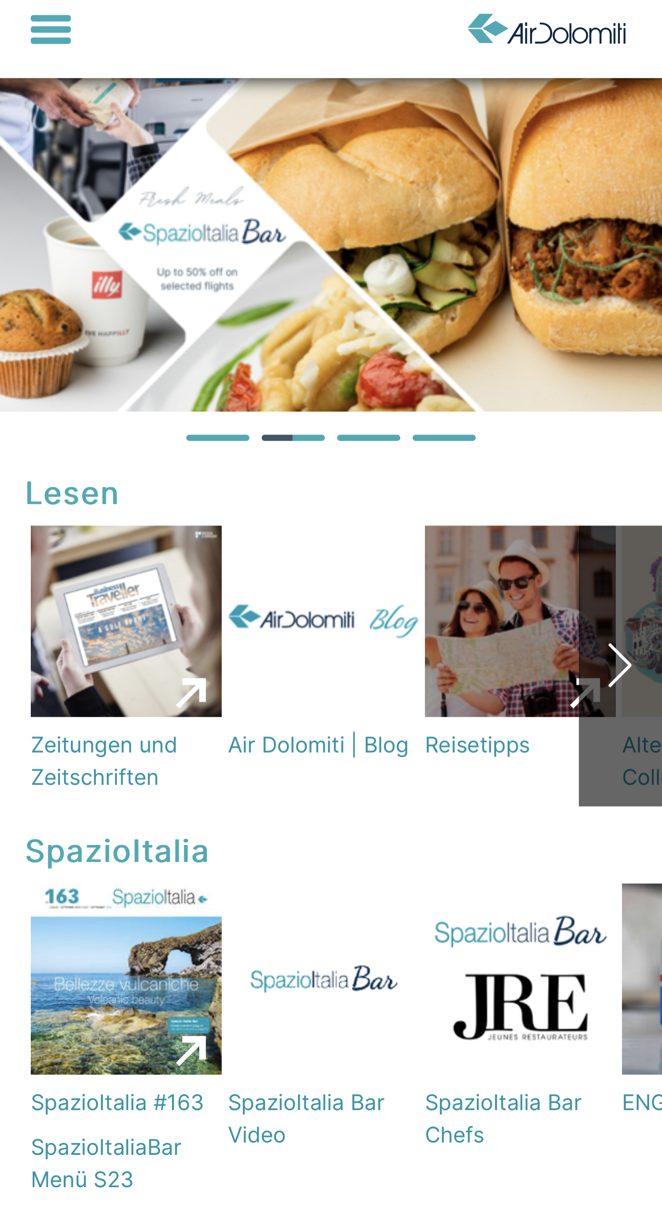 Im Gegensatz zu den meisten Lufthansa-Flügen bietet Air Dolomiti ein Entertainment System an, Passagiere können die persönlichen Gerätschaften mit dem Router an Bord verbinden.