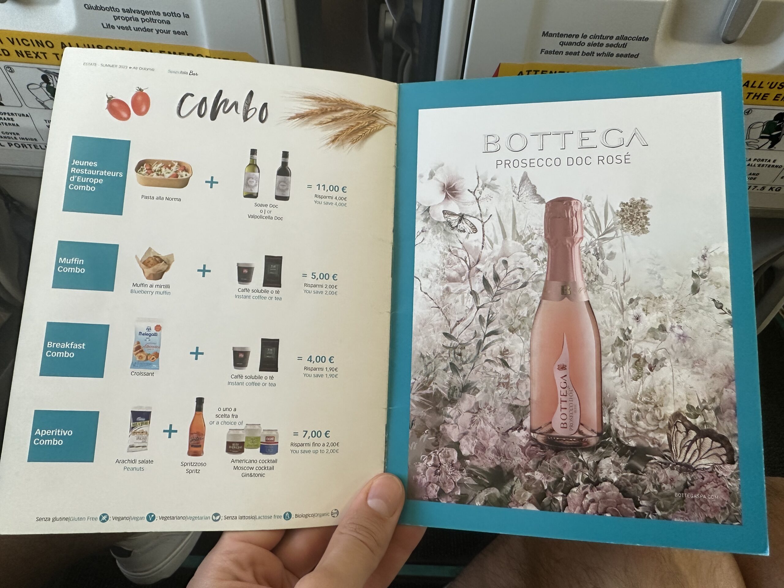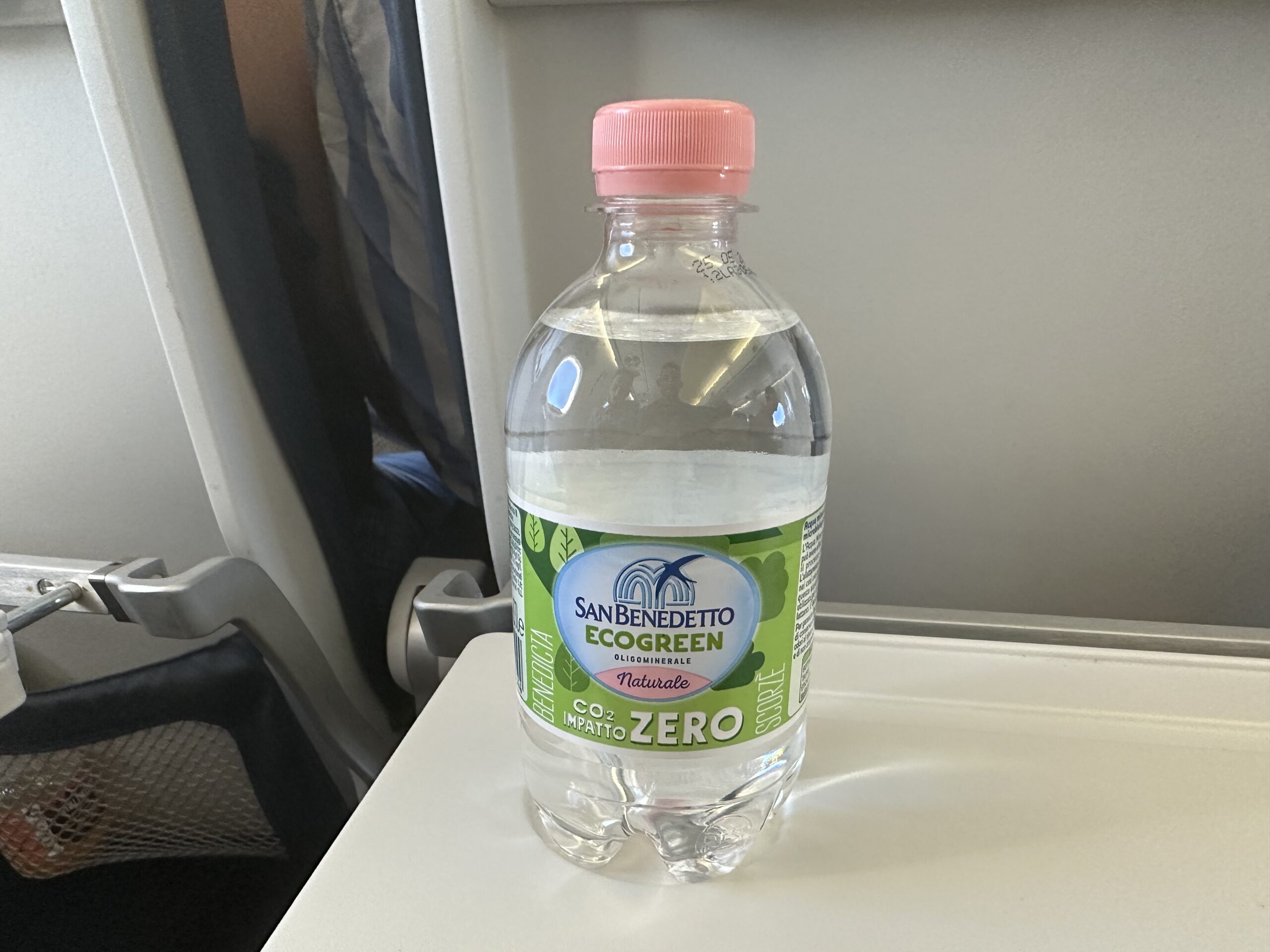 Danach wurden allerdings auch Getränke und Snacks aus dem Buy on Board Sortiment „SpazioItalia Bar“ angeboten! Etwas, was es bei Lufthansa bis heute in der Economy Class auf innerdeutschen Flügen nicht gibt.