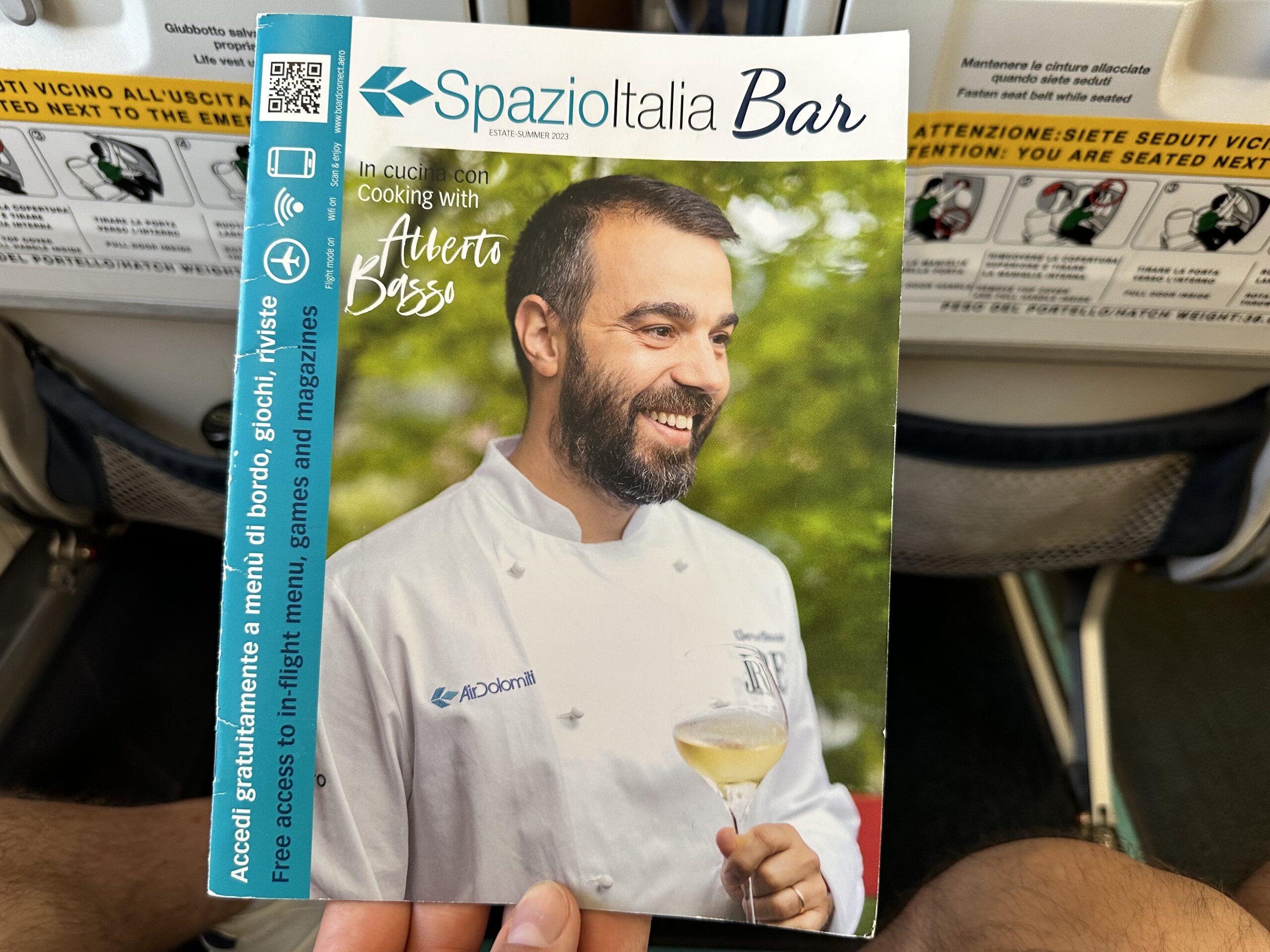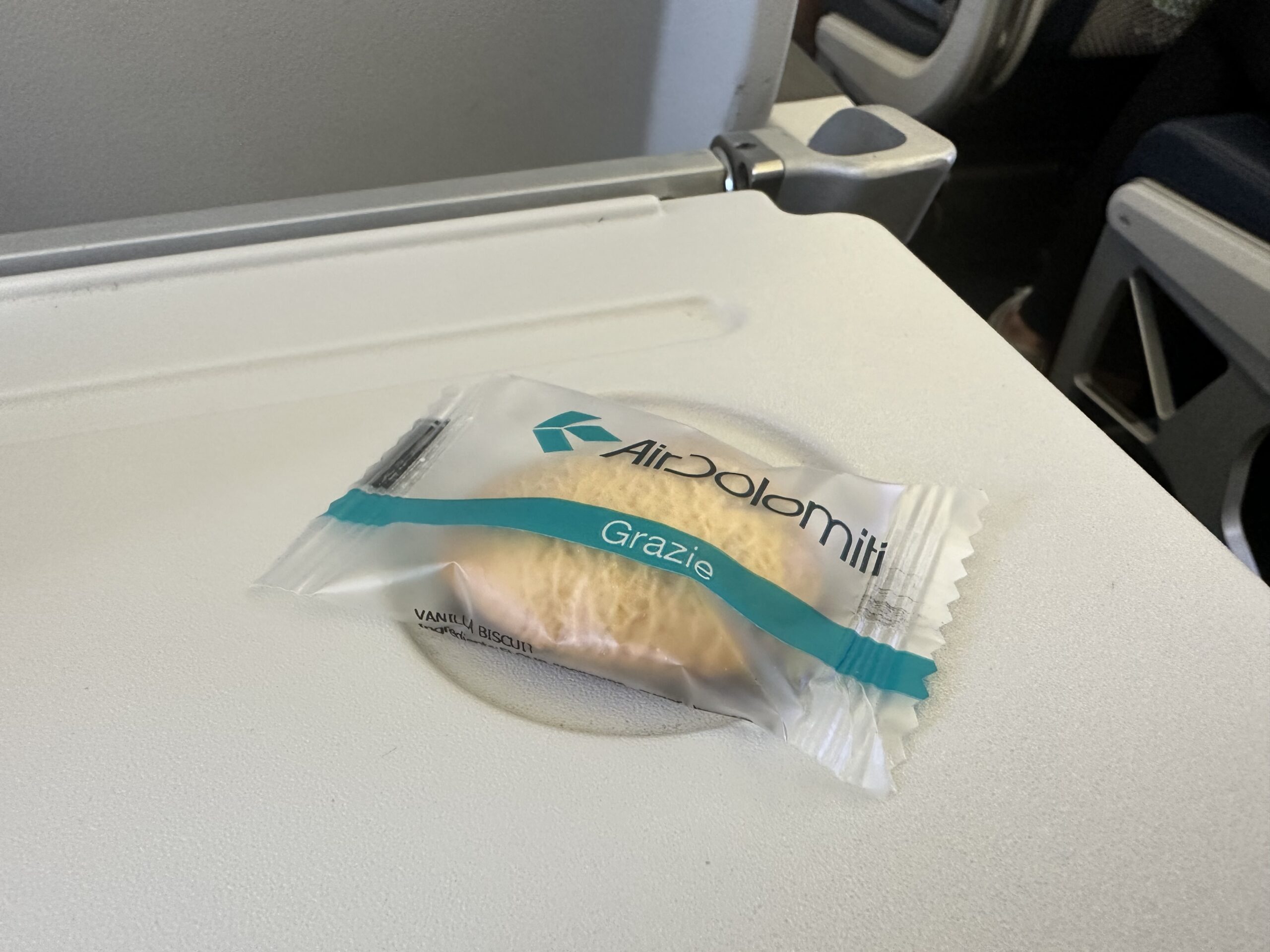 Dies war nicht unser erster Flug mit Air Dolomiti, daher haben wir zumindest keine Lufthansa Schokolade erwartet. Das wir aber auf einem 45-Minuten-Flug sogar aus dem Buy on Board bestellen durften, überraschte uns sehr positiv!