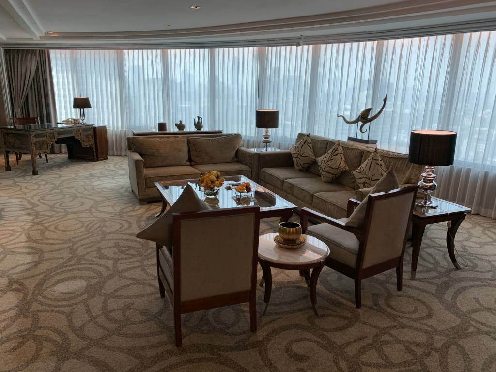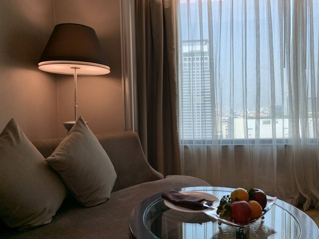 Gebucht hatten wir allerdings ein Club InterContinental Zimmer. Zu unserem Gefallen war schon weit vor der Anreise ein Upgrade in eine Corner Suite in der Buchung erkennbar. Etwas verwinkelt, aber dank der 31. Etage mit toller Aussicht ins Zentrum Bangkoks hinein. Die Corner Suiten befinden sich jeweils an den Enden der jeweiligen Etagen. Bei den Corner Suiten könnt Ihr zwischen der ruhigeren Seite oder wie bei uns mit Blick ins Stadtzentrum wählen.