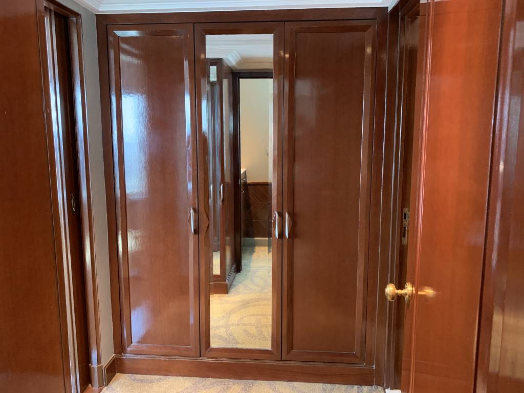 Am Ende des Wohnbereichs gelangt man in einen kleinen Flur. Hier sind diverse Schränke verbaut. Auch nützliches, wie Safe und Bügeleisen, finden sich hier. Aus dem kleinen Flur gelangt man entweder in das Schlafzimmer oder in das Bad.