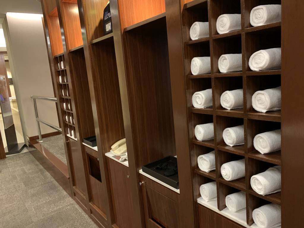 Der Spa- und Fitness-Bereich des Hotels befindet sich nur eine Etage tiefer. Normalerweise werden Gäste des Pools auch über die 36. Etage geleitet, um in Badeshorts nicht vor dem Club InterContinental aufzutauchen.
