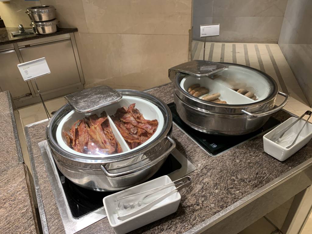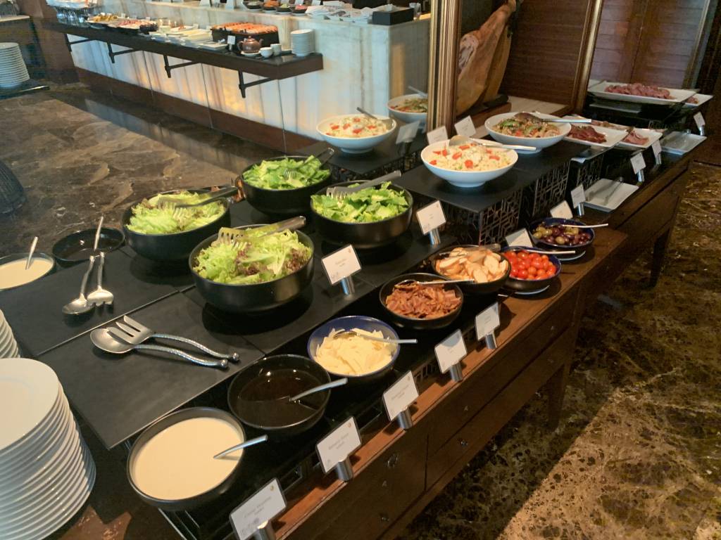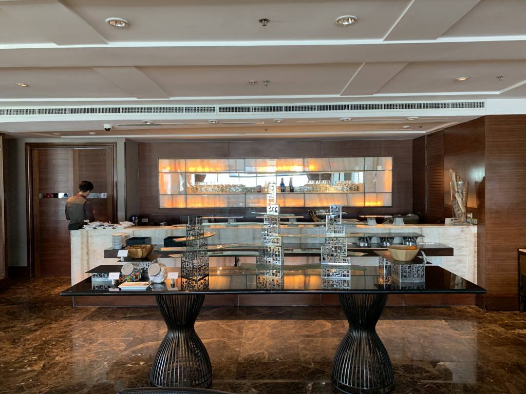 Das Frühstück im Club InterContinental wird in einem, für Club Lounges ungewöhnlich großen Bereich aufgebaut. Dafür wird die komplette Bar sowie Tische an den beiden Seiten des Raumes genutzt. Ergänzt wird das Frühstücks-Büffet noch um eine zusätzlich große Insel inmitten der Fläche.