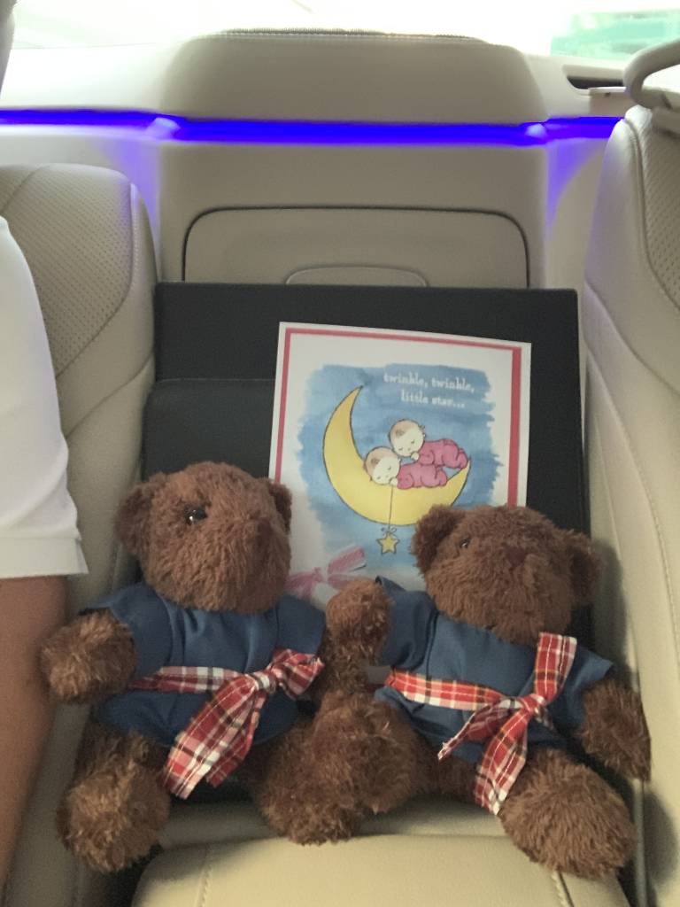 Fairy und das restliche Team hatten bei unserer Abreise noch mal eine tolle Überraschung für uns. Statt mit dem Taxi wurden wir mit der Mercedes S-Klasse des Hotels zum nächsten Abschnitt unserer Reise chauffiert. Und auf der Rückbank wartete noch eine kleine Überraschung auf uns: Ein Zwilligs-Pärchen Club InterContinental Bärchen mit einem lieben Gruß des Teams.