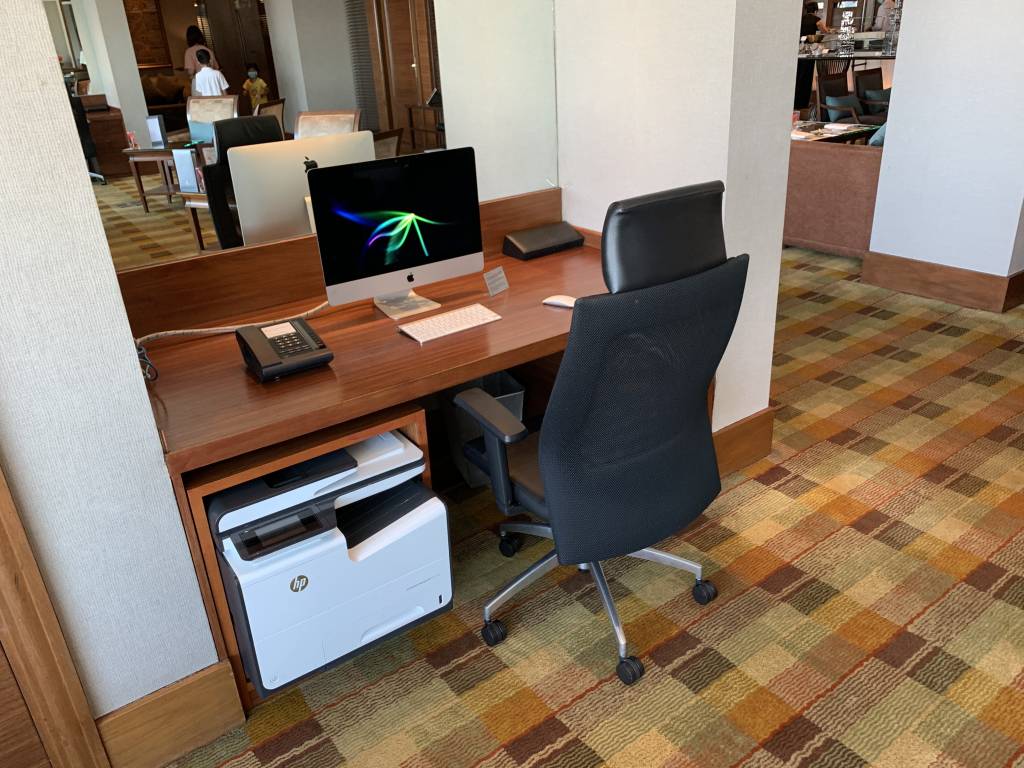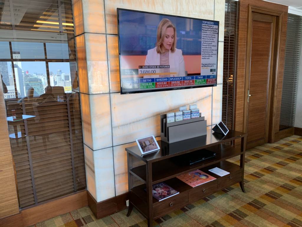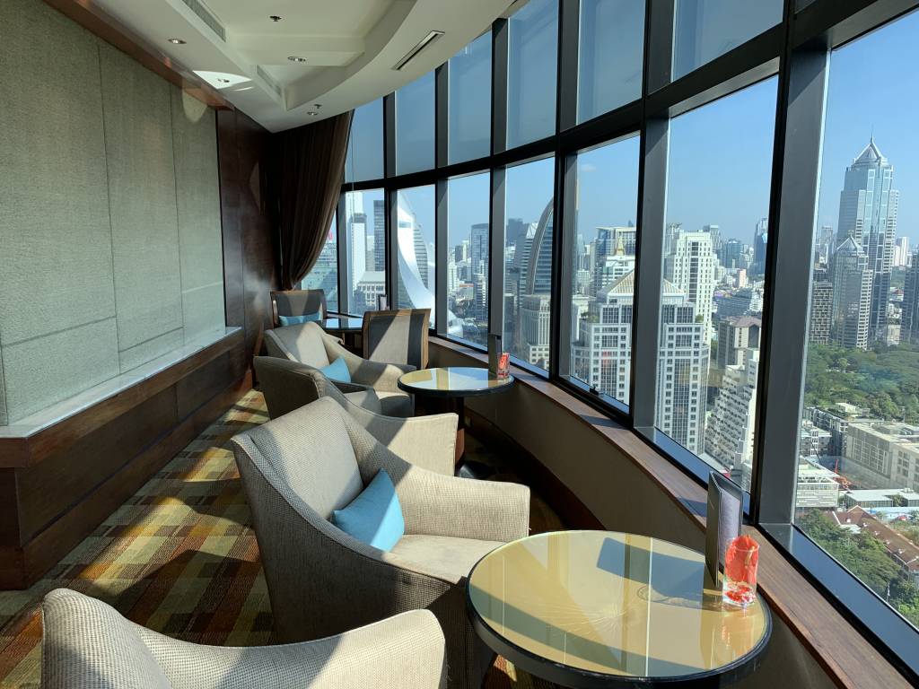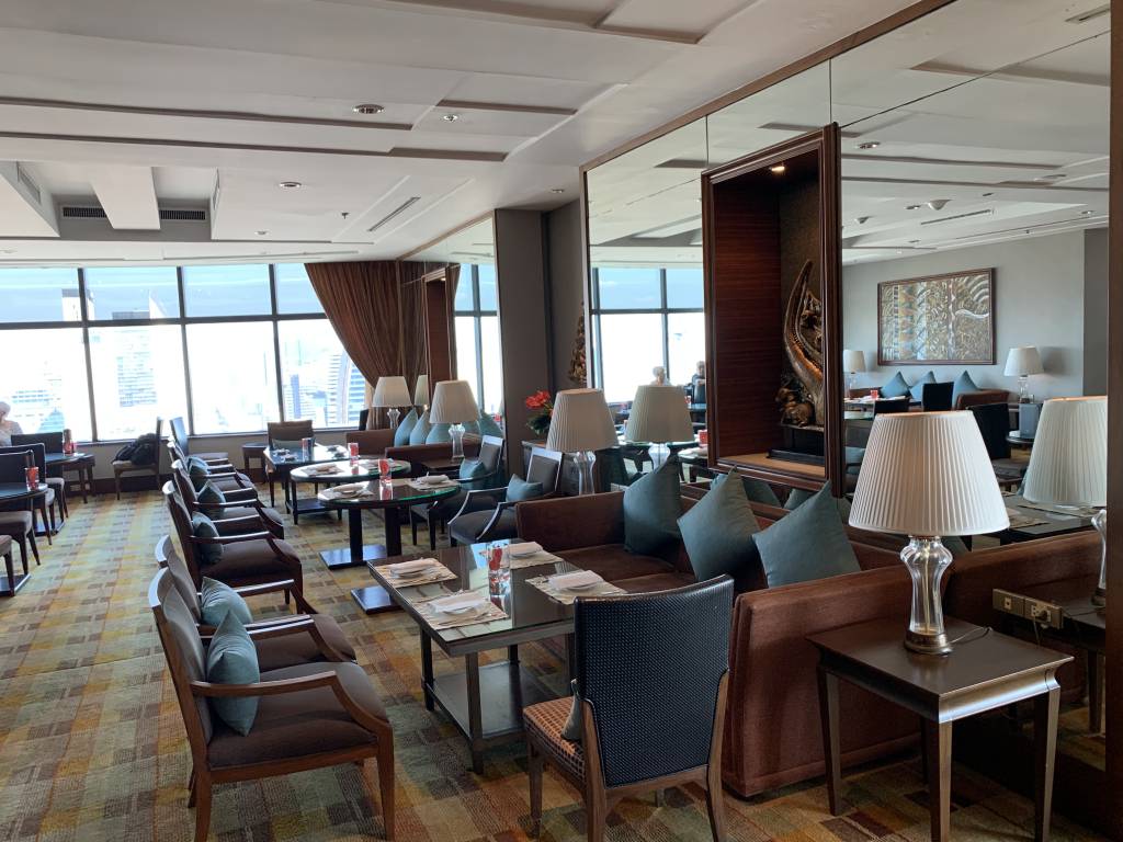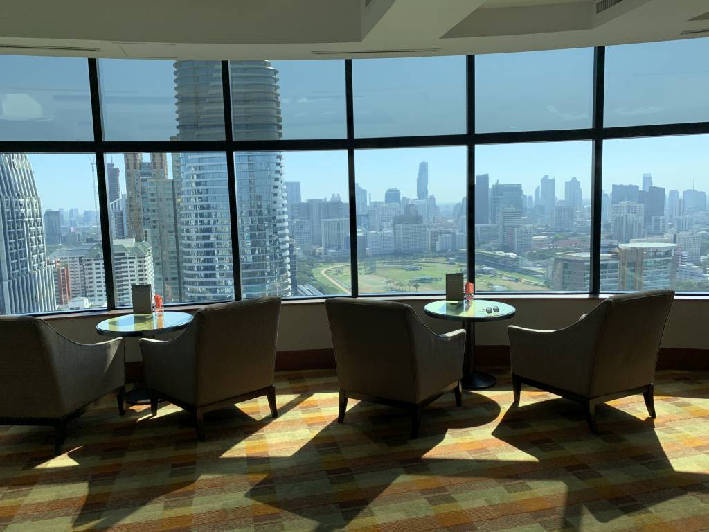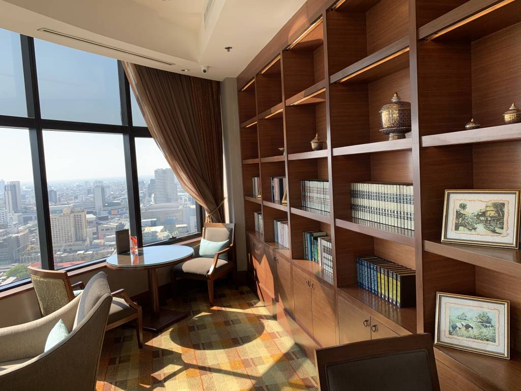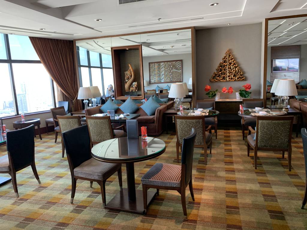 Beim Verlassen des Fahrstuhls gelangten wir zunächst in einem Vorraum, in dem auch die Rezeption zu finden ist. Daran anschließend findet sich der erste Gäste-Bereich mit einigen bequemen Sitzgruppen. Hier entspannt Ihr eher bei einem netten Drink und Gespräch. Auch der Konferenzraum des Clubs ist hier angegliedert und es stehen einige iPads zur Nutzung bereit. Einmal quer durch den Raum erreicht Ihr den größten Raum des Club InterContinental. Das Speisezimmer verfügt über zahlreiche Sitzgelegenheiten. Hier befindet sich auch die Bar und das Büffet. Unser Lieblings-Zimmer war das angrenzende Separee mit ca. sechs Sitzgruppen. Das Separee liegt in etwa auf der gleichen Ecke, wie unsere Corner Suite, so dass wir von hier ebenfalls einen hervorragenden Blick auf Bangkok und während der Cocktail-Hour auf den Sonnenuntergang hatten.