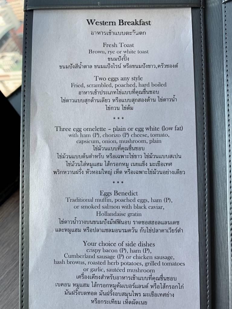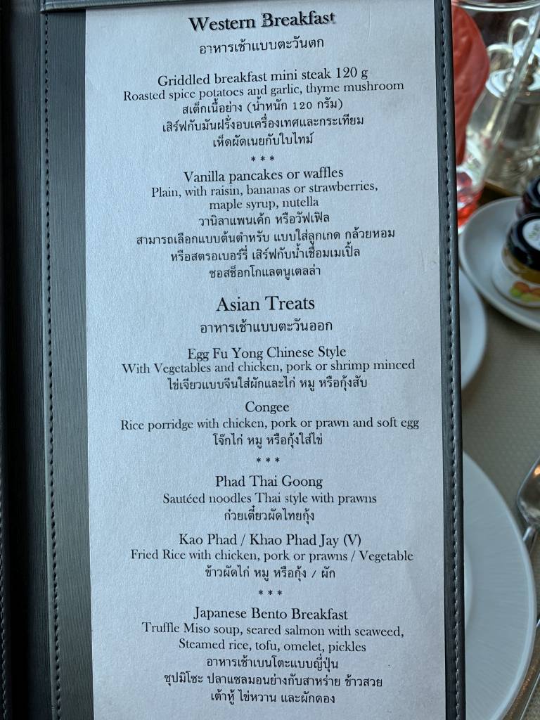 Aber kein Club InterContinental Frühstück wäre ein echtes Frühstück ohne Eggs Benedict, die wir am Tisch bestellen konnten. Doch Eierspeisen waren nicht das einzige, was die Speisekarte zum Frühstück bot. Denn Frühstücks-Steak, Waffeln oder Pancakes, Congee, Phad Thai und ein japanisches Bento Frühstück sorgten für ausreichend Abwechslung.