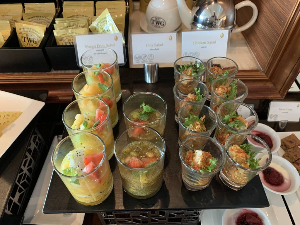Das Konzept des Club InterContinental in Bangkok erinnerte mich sehr stark an das InterContinental Hua Hin. Von 14:30 bis 16:30 Uhr gibt es einen Afternoon-Tea, der als Set am Tisch serviert wird. Etwas später von 17:30 bis 19:30 Uhr gibt es alkoholische Getränke und ein Büffet, ergänzt von warmen Canapees, die ebenfalls am Tisch serviert werden. Selbst die Last-Order um 19:15 Uhr ist identisch.