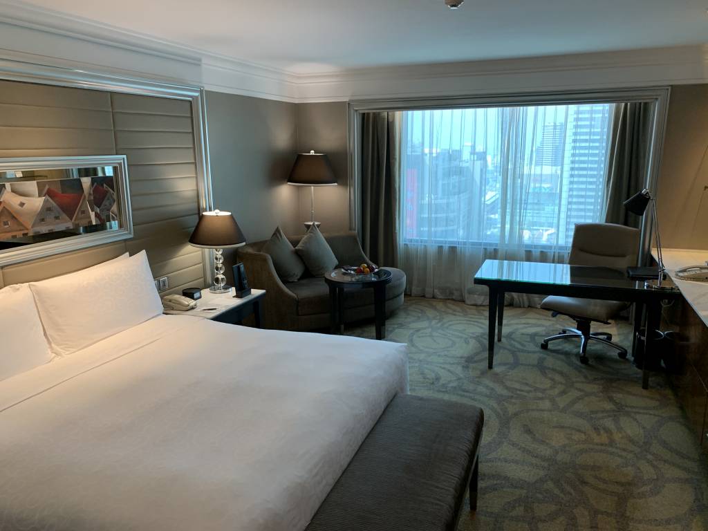 Wie so üblich zwar kein echtes „3 für 2“- auf die günstigste Rate, aber immerhin drei Nächte für rund 750 Euro. Was für mein Empfinden für Bangkok viel Geld ist, da viele sehr gute Hotels schon für rund 100 Euro pro Nacht buchbar waren. Und bei Marriott oder Hilton hätten wir den Club Lounge Zugang garantiert auch in der einfachsten Zimmer-Kategorie bekommen. Aber gut, dort gibt es keinen Champagner. Und den Aufpreis kann man durch effektiven Champagner-Konsum während der Cocktail-Hour fast wieder rausholen. Dachten wir zumindest im Vorhinein.
