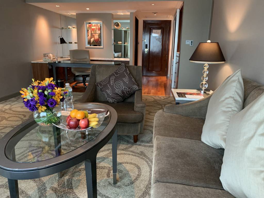 Wir sind mit einem IHG Rewards Club Spire Elite und dem InterContinental Ambassador Status im InterContinental Bangkok angereist. Während der IHG Status in der Regel bei InterContinental Hotels wenig bringt, bekamen wir durch den Ambassador Status ein Upgrade auf eine Corner Suite. Außerdem lag als nette Geste bei unserer Ankunft ein handgeschriebener Welcome-Letter auf unserem Zimmer.